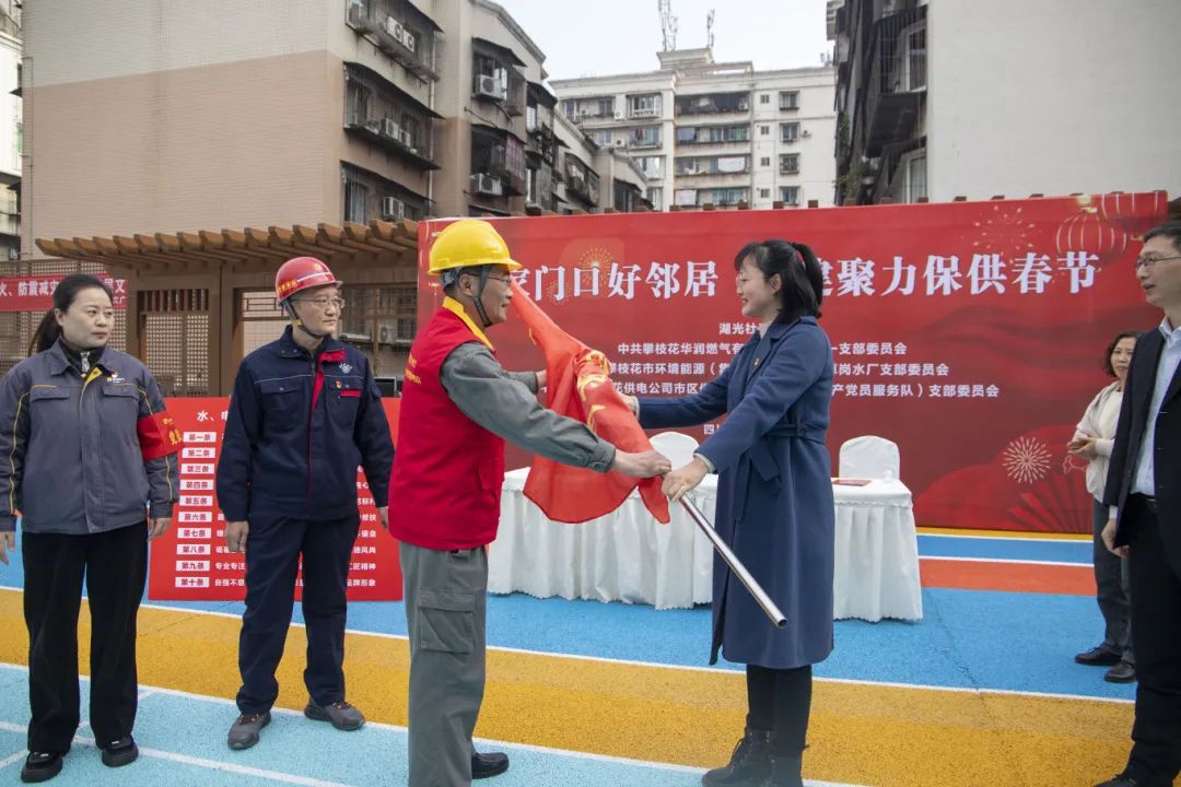 2月2日,攀枝花市水、电、气行业的共产党员服务队一同上门服务,为攀枝花市东区湖光社区甘露园小区居民检查、维护用水、用电、用气的设施设备,确保居民们春节期间水电气通畅无忧。
