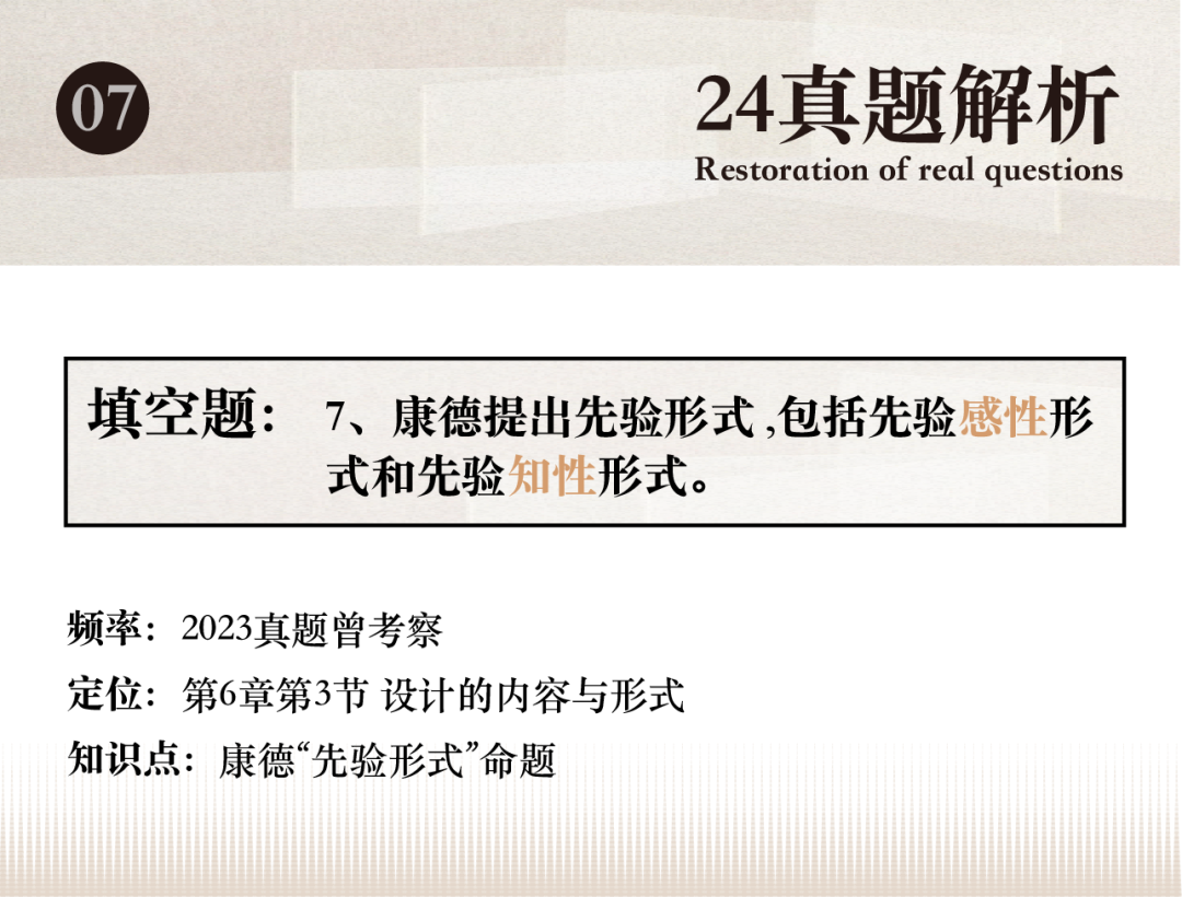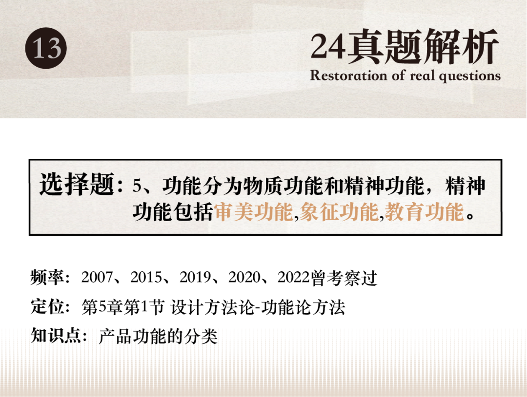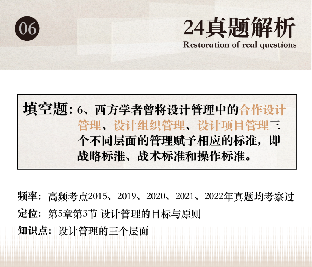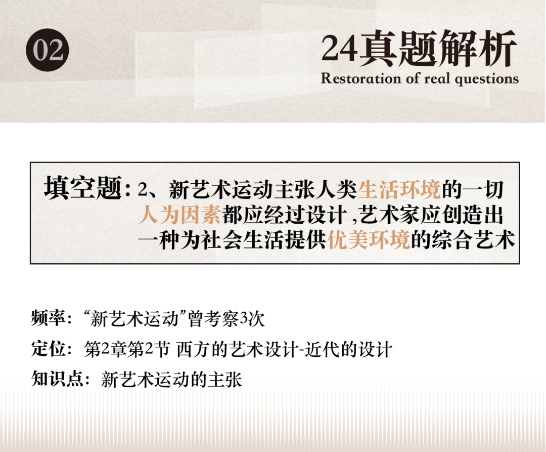 东华大学这门理论专业课的考察还是相对常规的。以24年最新真题为例,首先,从考察范围来看,试题的分布是相对均衡的,从1-9章均有分布,其中填空题和选择题主要分布在2-6章,而简答题和论述题主要分布在第9章。其次,从考察内容来看,大部分为章节重点内容,不过也有一些比较细的知识点,例如填空题第4题所对应的知识点是参考书上第四章最前面的引言部分,可见我们在平常的学习中就要做到认真细致,不放过任何一个可能会考察到的书本知识。最后,从考察趋势来看,简答题和论述题不仅考察了课本知识,还把握住了今年的热点话题——“生态设计”与“适老化设计”。
