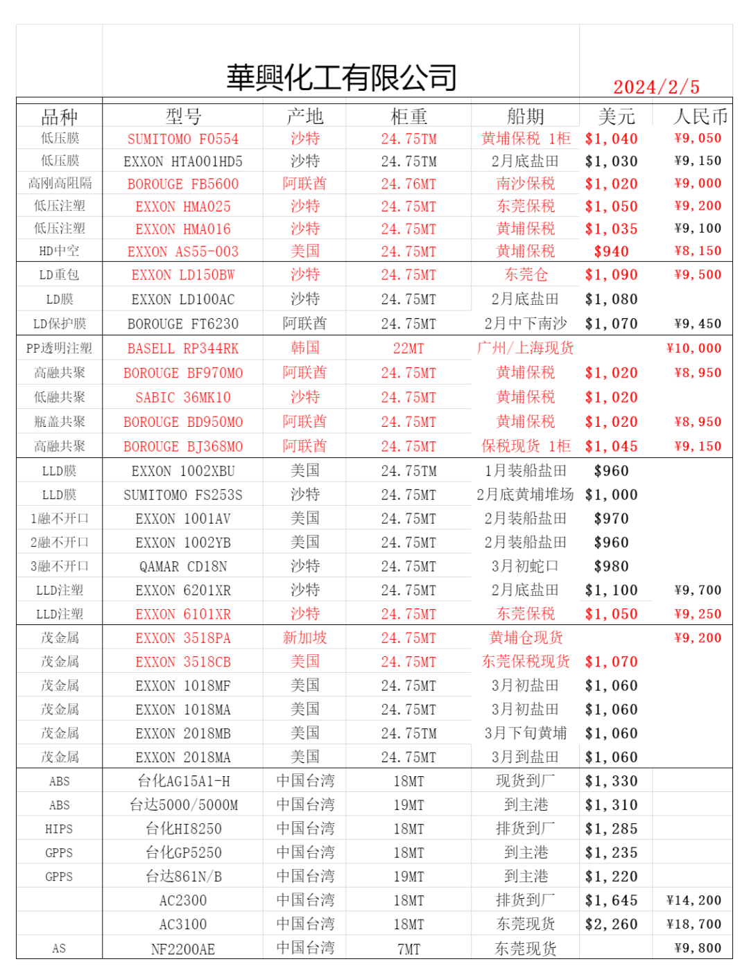 華興化工有限公司主營塑膠原料,總公司設於廣州從化,貿易部設於深圳,公司擁有高素質的精英團隊。公司一貫本著信譽第一、客戶至上的經營理念,為廣大客戶提供優質產品與服務。公司主要經營品種有:HDPE、LDPE、LLDPE、ABS、GPPS、HIPS、PP...;與埃克森、沙比克、QAMAR、BOROUGE、BASELL、住友、ARAMCO、台化、台達、國喬、台塑、奇美等世界知名化工廠長期保持著良好的合作關係,可隨時提供穩定的貨源.公司靈活的經營機制、合理的銷售價格以及誠信的服務理念,一直廣受客戶及供應商稱譽,我們願以優質的產品、一流的服務和誠信的經營,與廣大客戶共創雙贏!