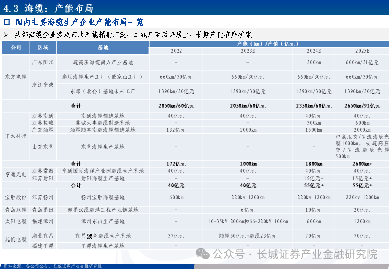 投资建议:随着海上风电加速推进、已规划核准的项目开工建设以及海外市场进入新一轮增长周期,产业链企业发展空间广阔,具有海外布局的企业竞争力加强。1)塔筒管桩:推荐关注海力风电、天顺风能、天能重工,建议关注泰胜风能、大金重工;2)海缆:重点推荐东方电缆、起帆电缆;3)零部件:推荐关注金盘科技、振江股份、金雷股份、日月股份,建议关注中际联合等。