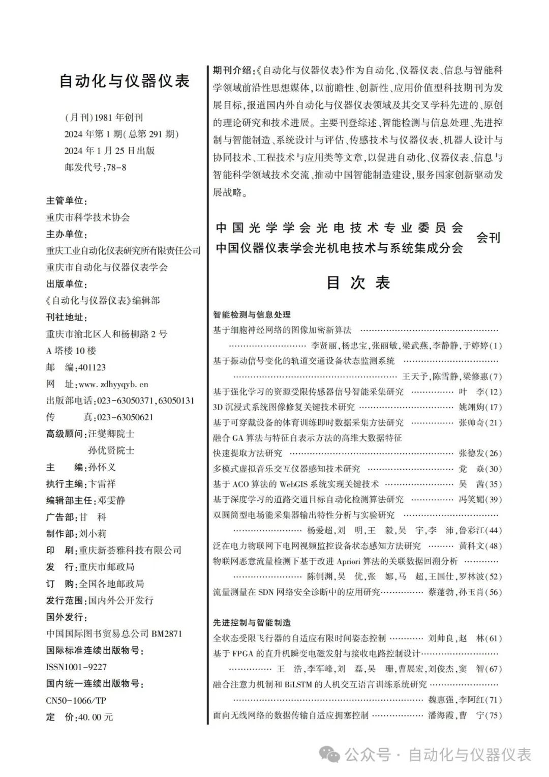 《自动化与仪器仪表》2024年第1期已出,欢迎广大作者、专家及读者朋友阅读、下载和引用!