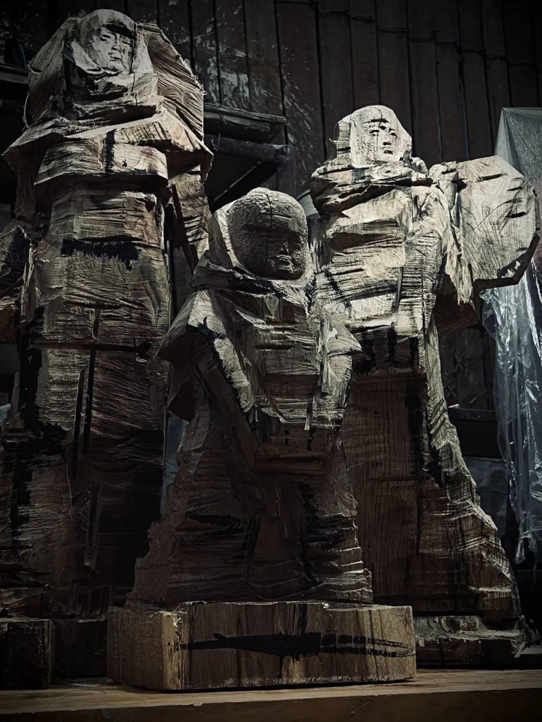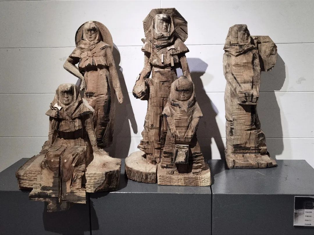 我院教师郭光磊的雕塑作品《意向泉州》用木材料雕刻而成,采用大刀阔斧的概括手法表现几位惠安女眺望远方,期盼美好生活的场景。该作品歌颂勤劳勇敢的女性形象,惠安女是中国女性的代表,她们勤勉,劳作,有着坚定的信念和执着的精神。在艰难的生活环境中,她们依然能够保持一颗乐观向上的心,用勤劳的双手和聪明的才智创造出美丽的家园,展现出女性的力量和魅力。