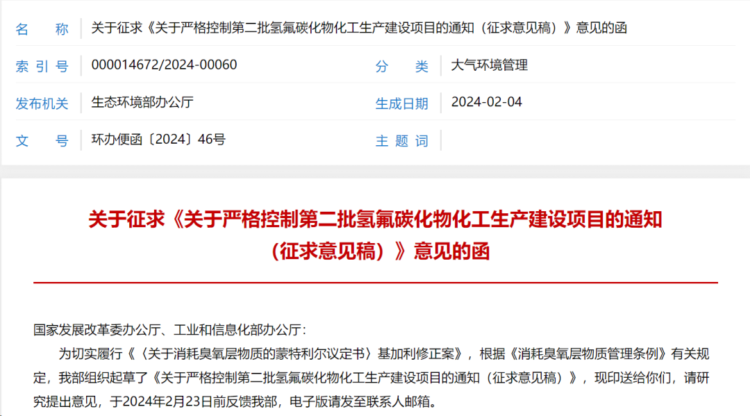 关于严格控制第二批氢氟碳化物化工生产建设项目的通知 (征求意见稿)