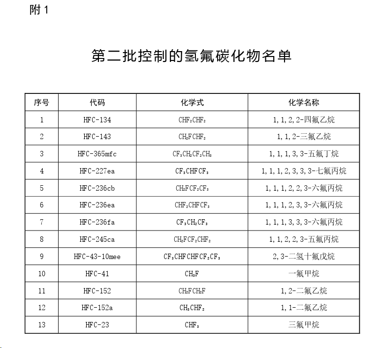 一、自2024年x月x日起,各地不得新建、扩建附1所列用作 制冷剂、发泡剂等受控用途的HFCs化工生产设施(不含生产过程中附带产生HFCs的化工生产设施,即副产设施),环境影响报告书(表) 已通过审批的除外。