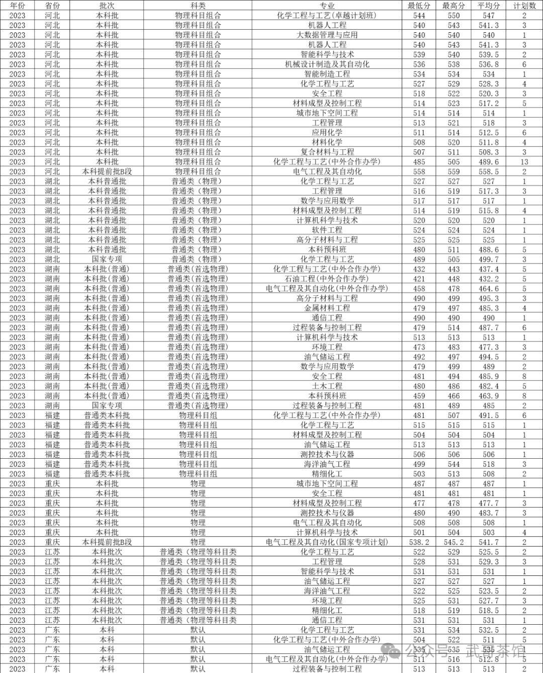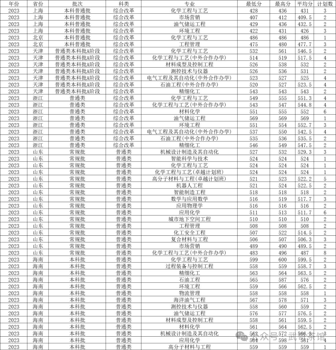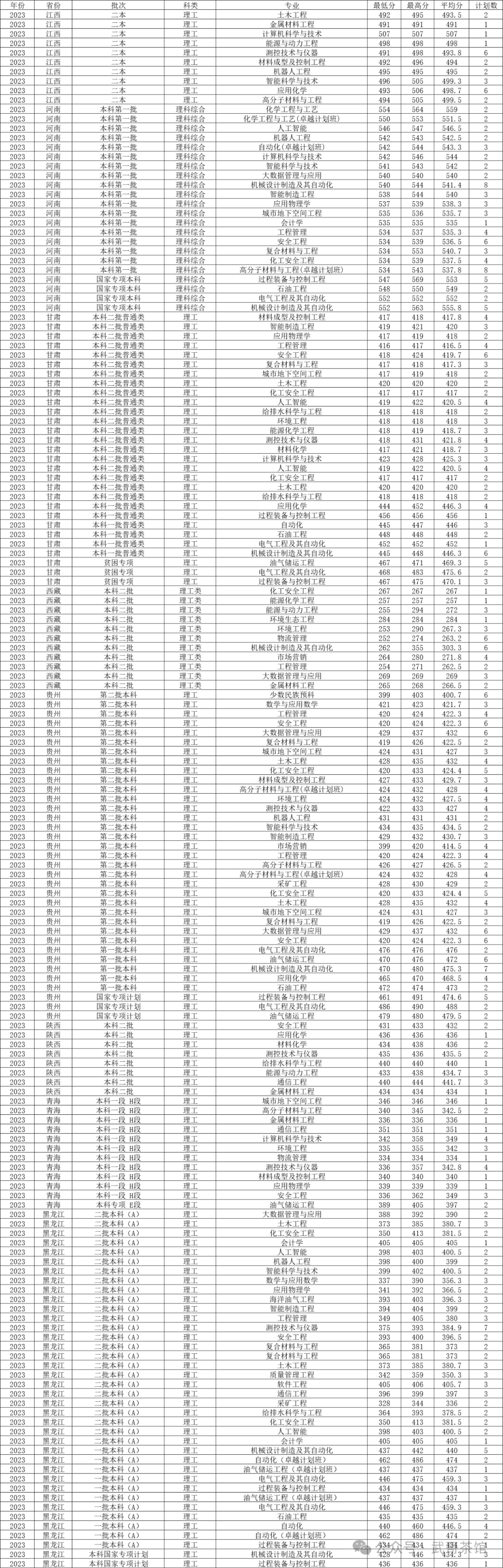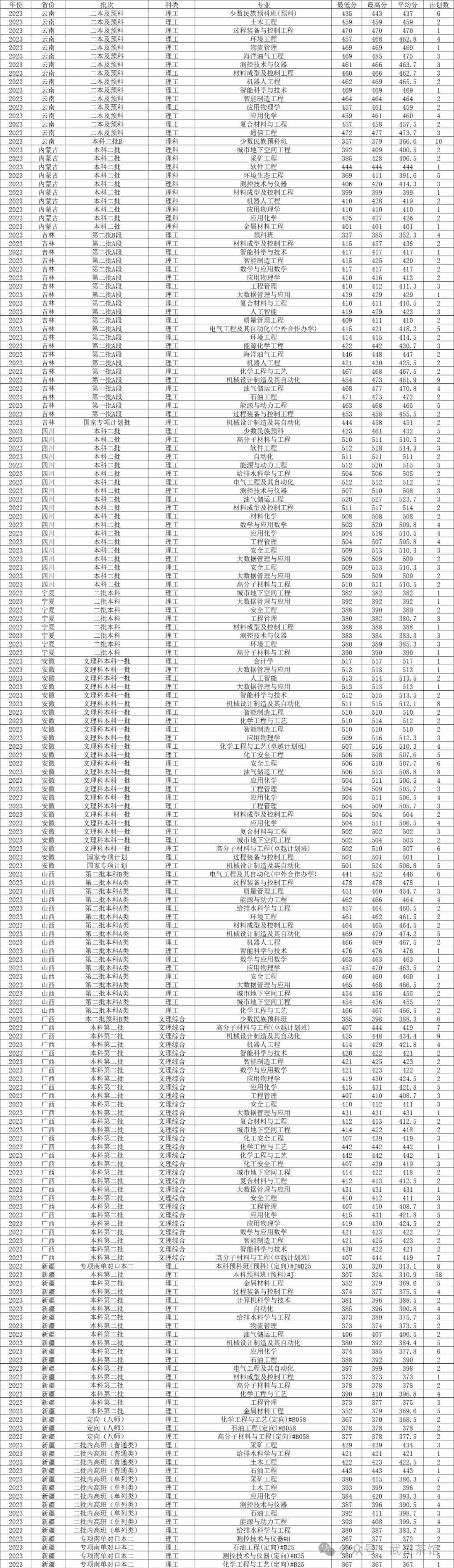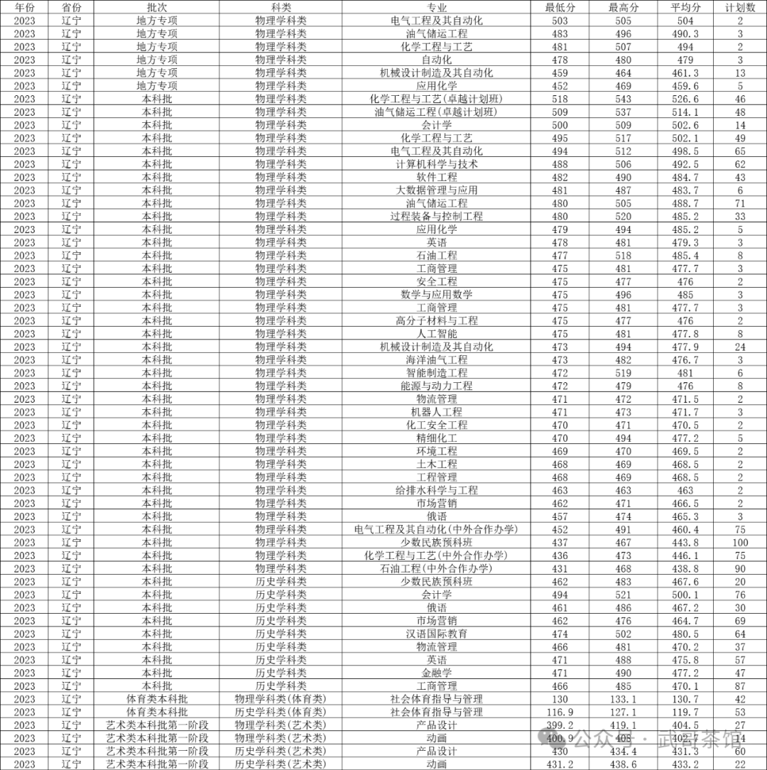 四、辽宁石油化工大学2023年在传统高考省份各专业录取分数线
