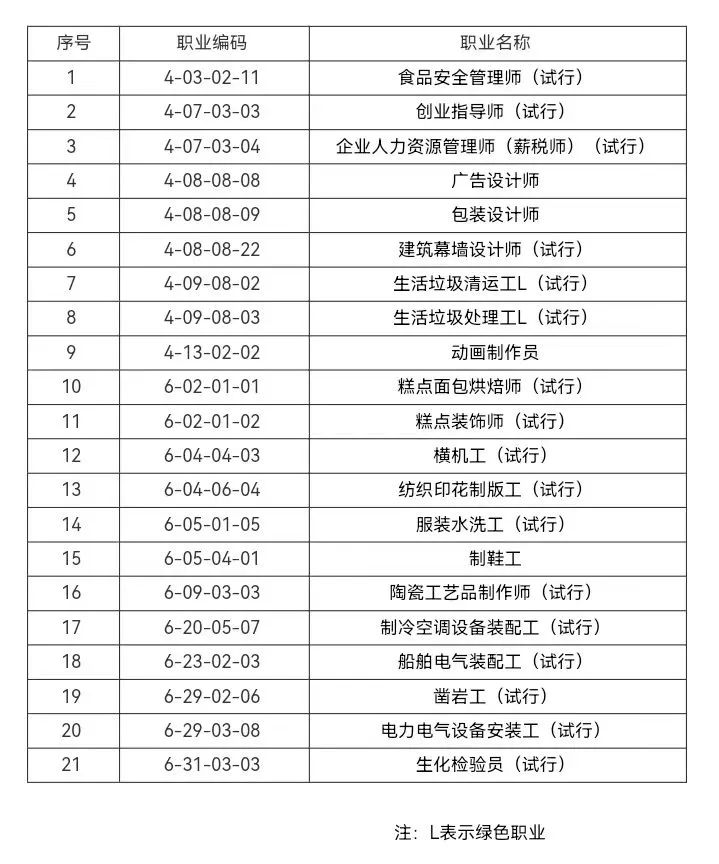 附件:21个国家职业标准目录
