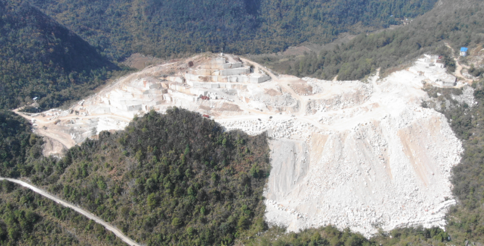 平塘华鼎矿业有限公司者密镇拉关村交林饰面用灰岩矿,大量开采石料、废料随意堆放、沿坡倾倒,覆压山体坡面大片灌木草丛,坡面形成“海浪防波堤”。部分废石料混杂山体表土排入矿界外山沟,侵占灌木林(草)地,且未办理堆渣场临时用地手续。县林业部门行政处罚决定书显示,该矿山自2018年10月开始开采饰面石,至2021年9月非法占用林地共计87.38亩,被林业部门查处责令整改后,于2023年5月继续侵占8.76亩林地进行违法生产活动。该公司者密镇和平村雷拨井饰面用灰岩矿,早在2021年9月就被审计指出“在未取得林地手续批复情况下违规占用林地36.75亩”,2022年11月该矿山再次违法占用林地4.2亩。同时,该矿山22.02亩临时用地手续已于2023年6月3日过期。直至督察进驻,该公司两座矿山均未完成林地手续办理,有关行业管理部门也未依照《生态环境损害赔偿管理规定》等相关规定,提起开展生态损害赔偿工作。