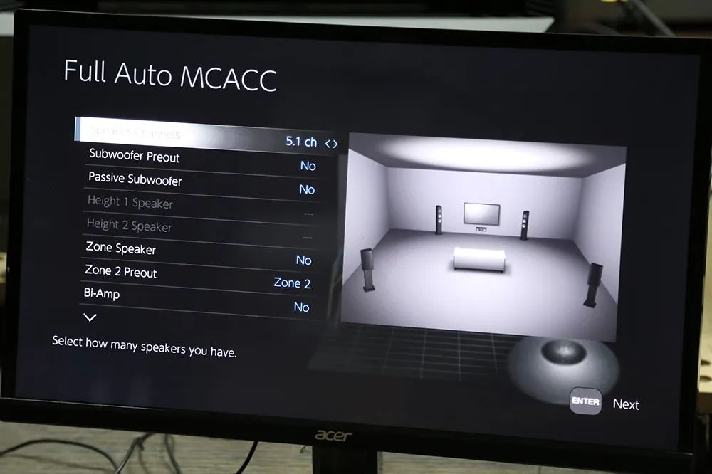 MCACC Pro 量测过程全自动,事前也不必先设定声道数,包括是否使用 bi-amp 或被动超低音都能自能侦测,也会侦测音箱相位是否插对,测完再检查声道是否正确。 |