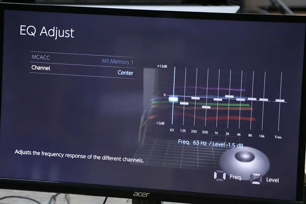 MCACC Pro 可调整各声道的驻波状况,画面中显示的是中置声道,可藉由调整不同频段的滤波进行微调。 |
