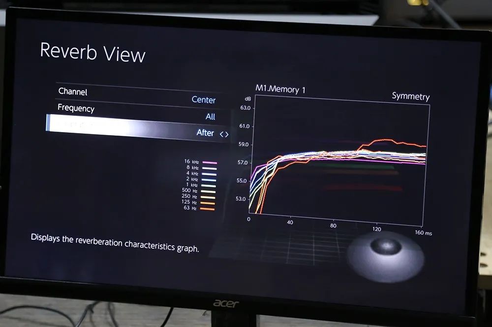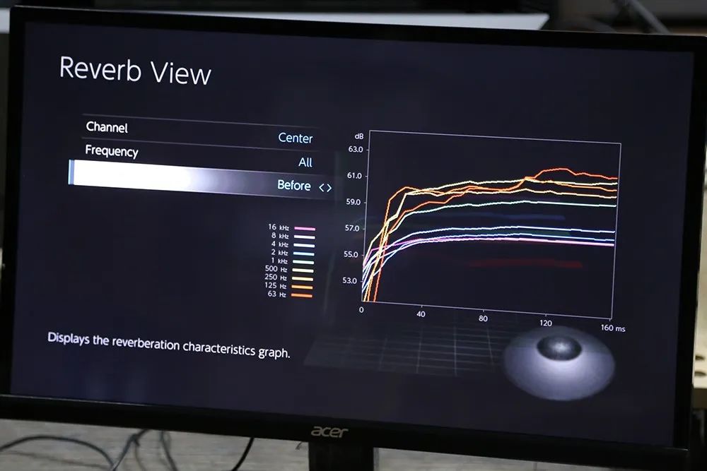 MCACC Pro 还能够处理残响,画面中是 MCACC Pro 处理之前中置声道各频段的残响状况,可以看到低频段的残响蛮多的。下一张图是处理后的状况。 |