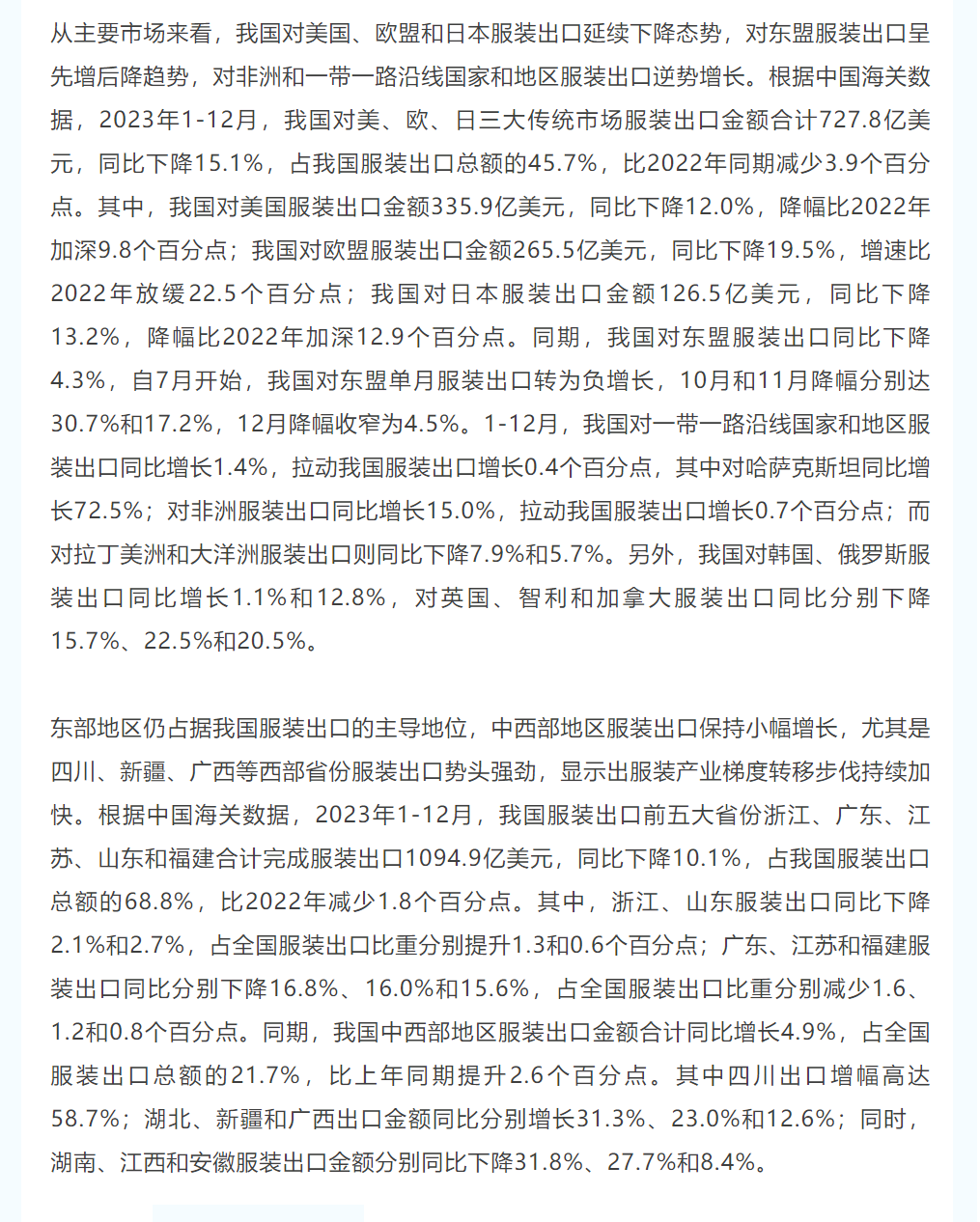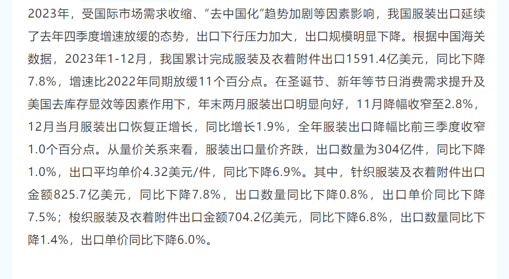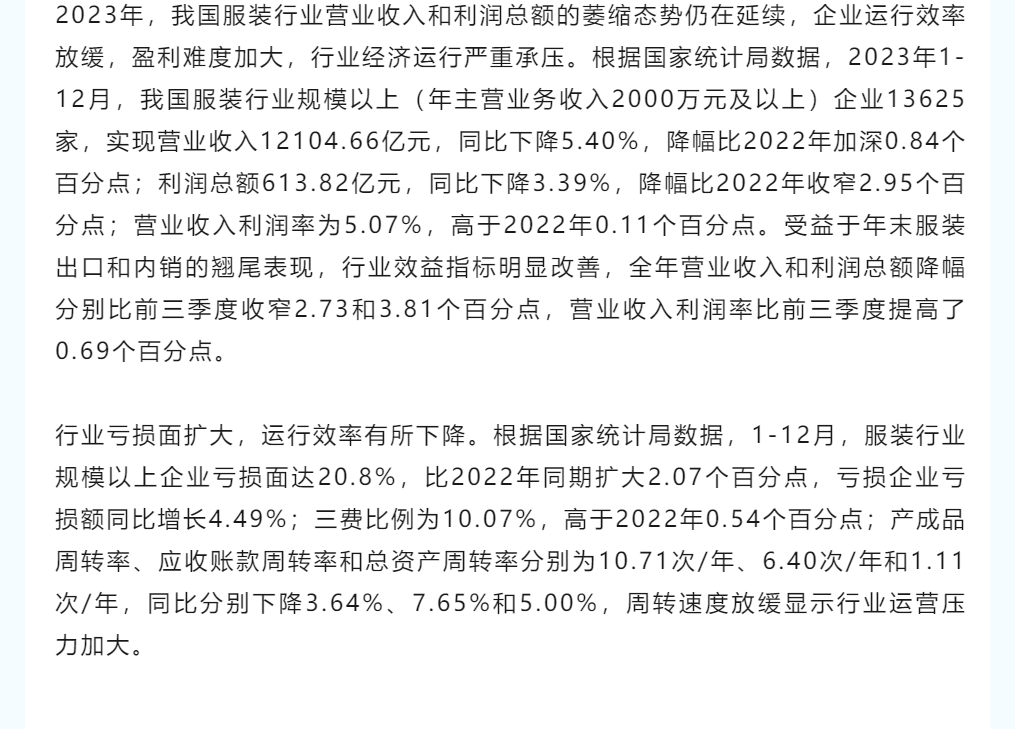 关注 | 2023年1-12月中国服装行业经济运行简报