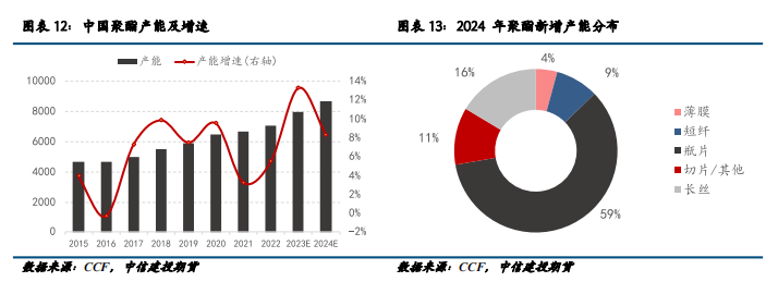 新增产能有限亦支撑利润修复。2024年中国聚酯产能虽然维持较高增速,但计划投产装置中,近60%为瓶片装置,仅16%的新增产能计划生产涤纶长丝,合计约116万吨。持续多年的投产周期逐步进入尾声,也将在一定程度上支撑涤纶长丝利润修复。