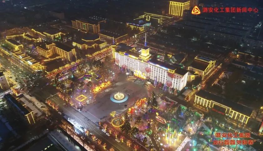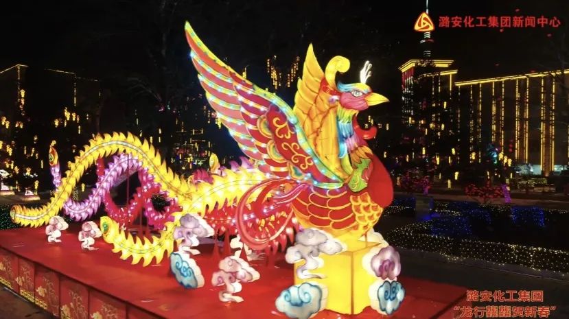 随着集团党委副书记、总经理马军祥宣布“潞安化工集团2024年‘龙行龘龘迎新春’春节亮化,开灯”,集团办公楼前的大型灯组竞相点亮,与众多色彩斑斓的氛围灯、景观灯、光束灯、造型灯、LED灯串交相辉映,呈现出一派“花灯璀璨不夜天”的绚丽景象。