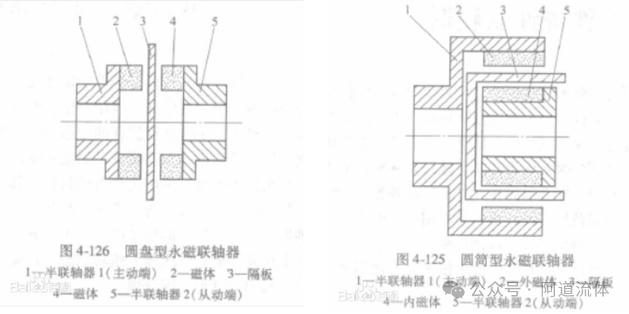 那么,电机轴穿过腔体的同时,要实现密封,并且是动密封,增加了设计、制造的难度,可靠性也会受影响。而通过磁驱动,可以隔着密封外壳,在密封壳外面,利用电机带动磁铁,来驱动密封壳内部也安装了磁铁的转动零件(永磁联轴器),实现液体输送。将动密封(轴密封)问题,变成了相对简单的静密封问题,设计更加可靠。