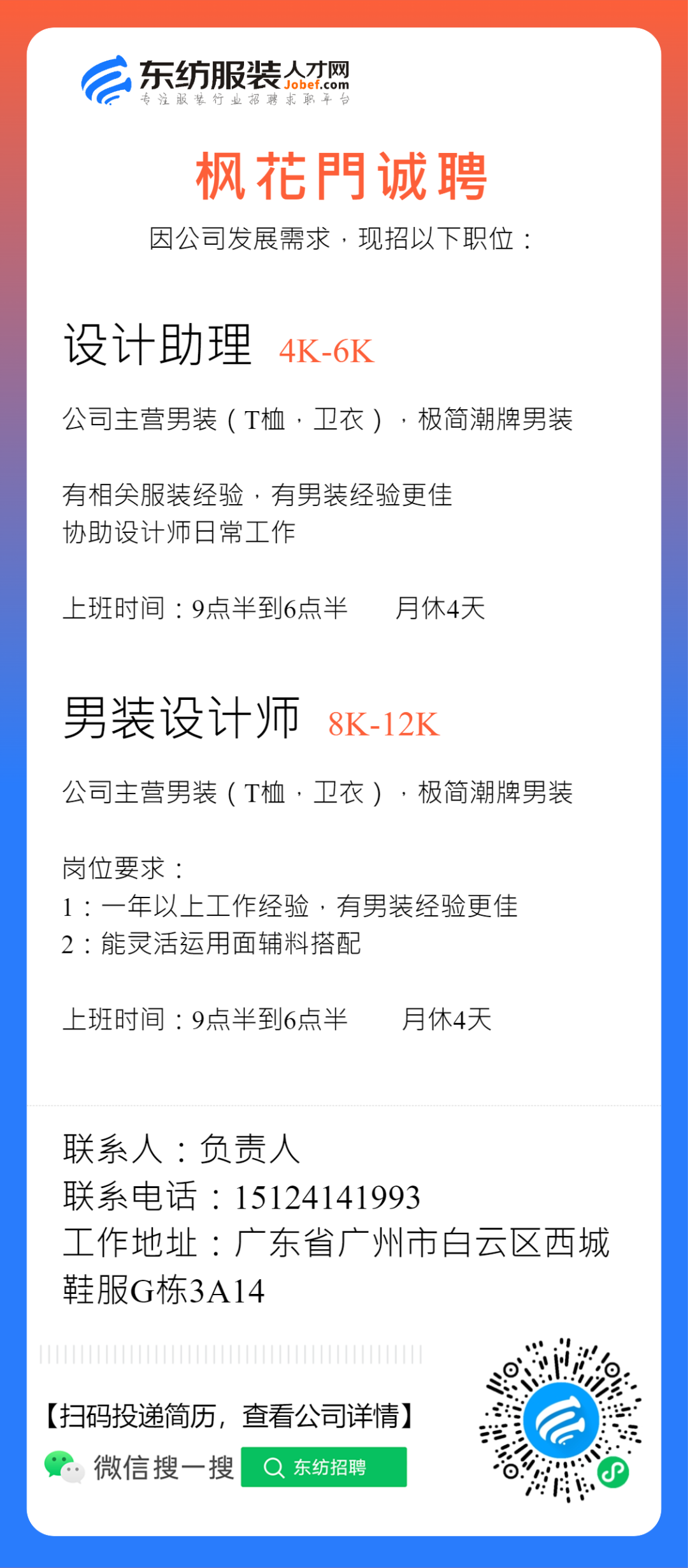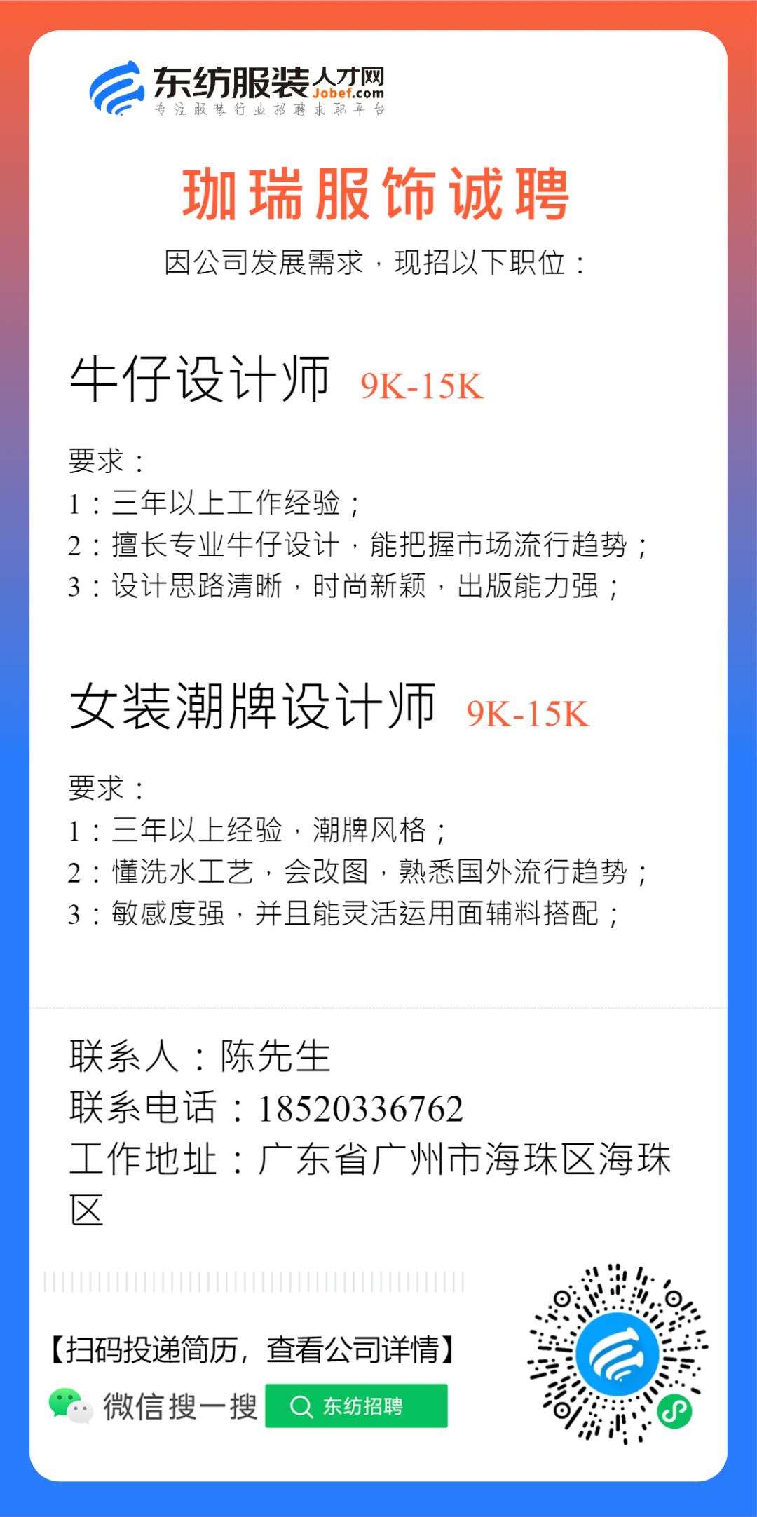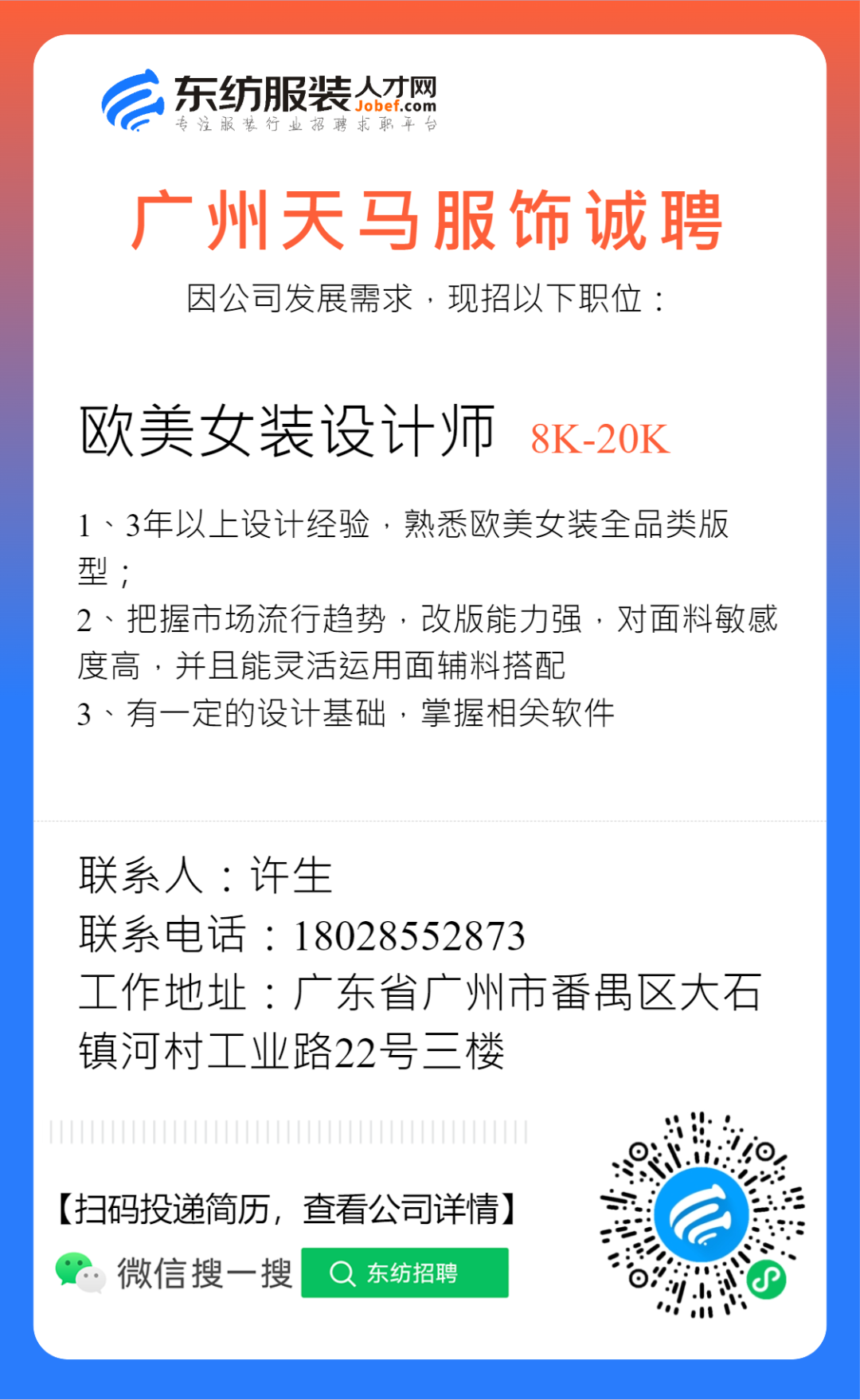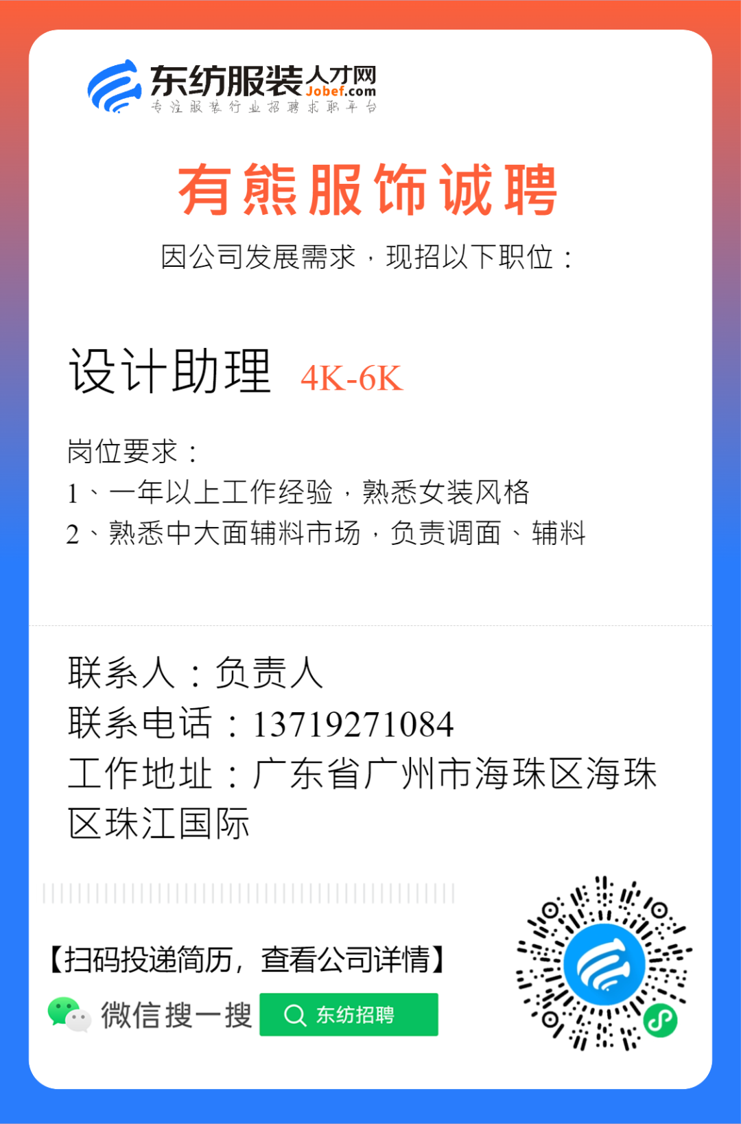 服装招聘·设计类丨2. 07号,女装设计师、男装设计师、童装设计师、设计助理.....