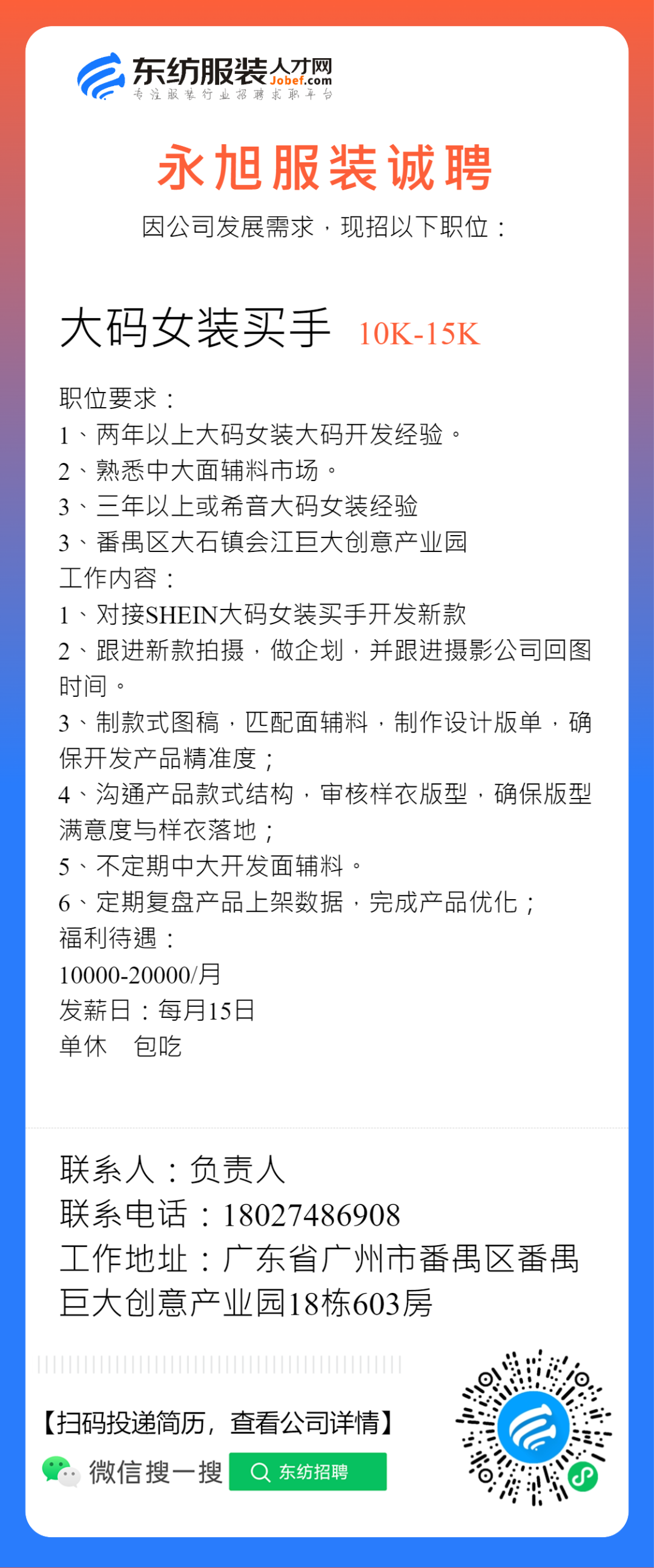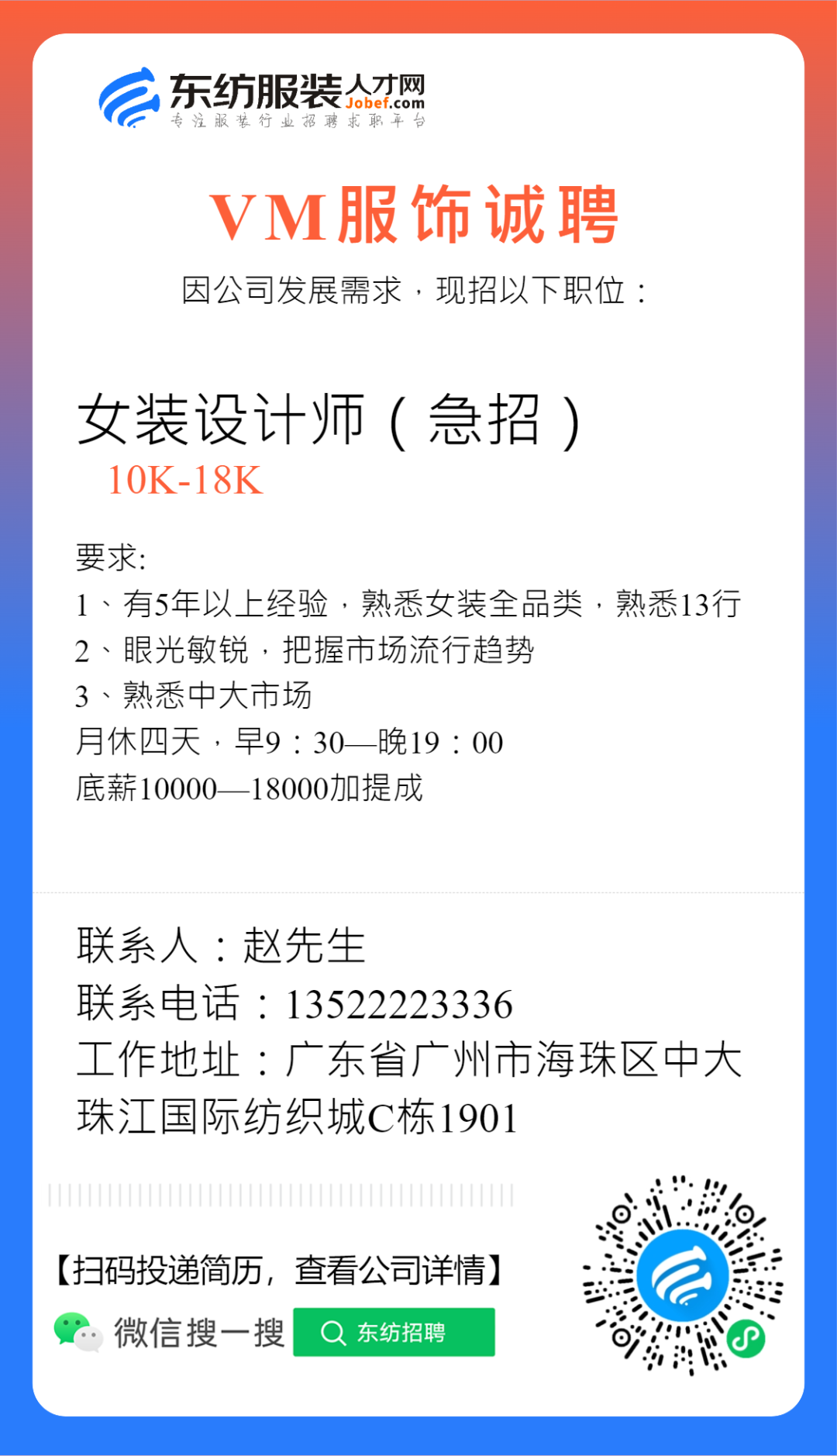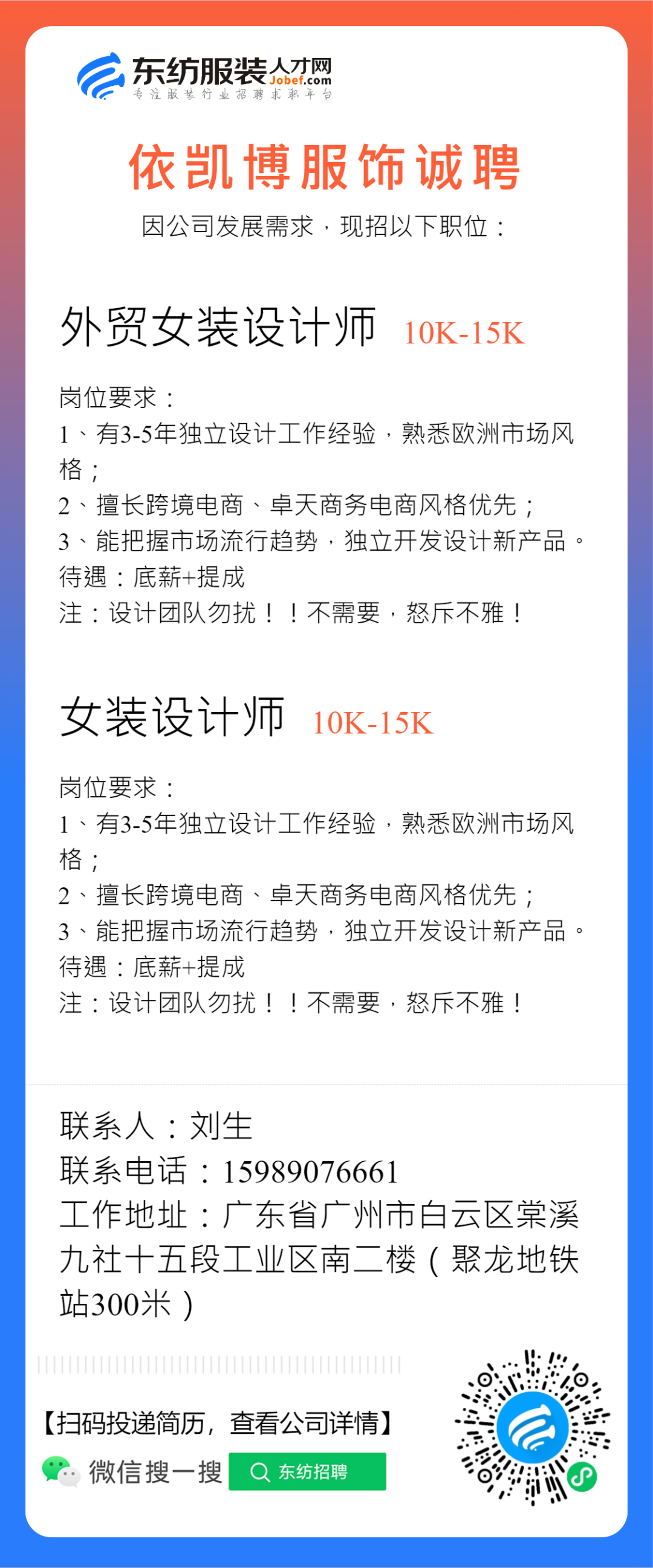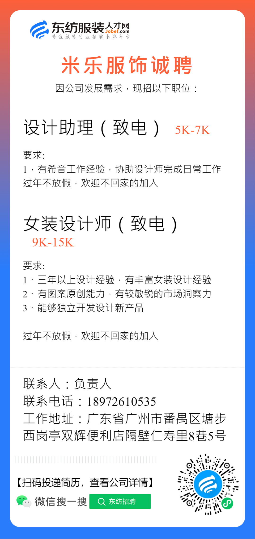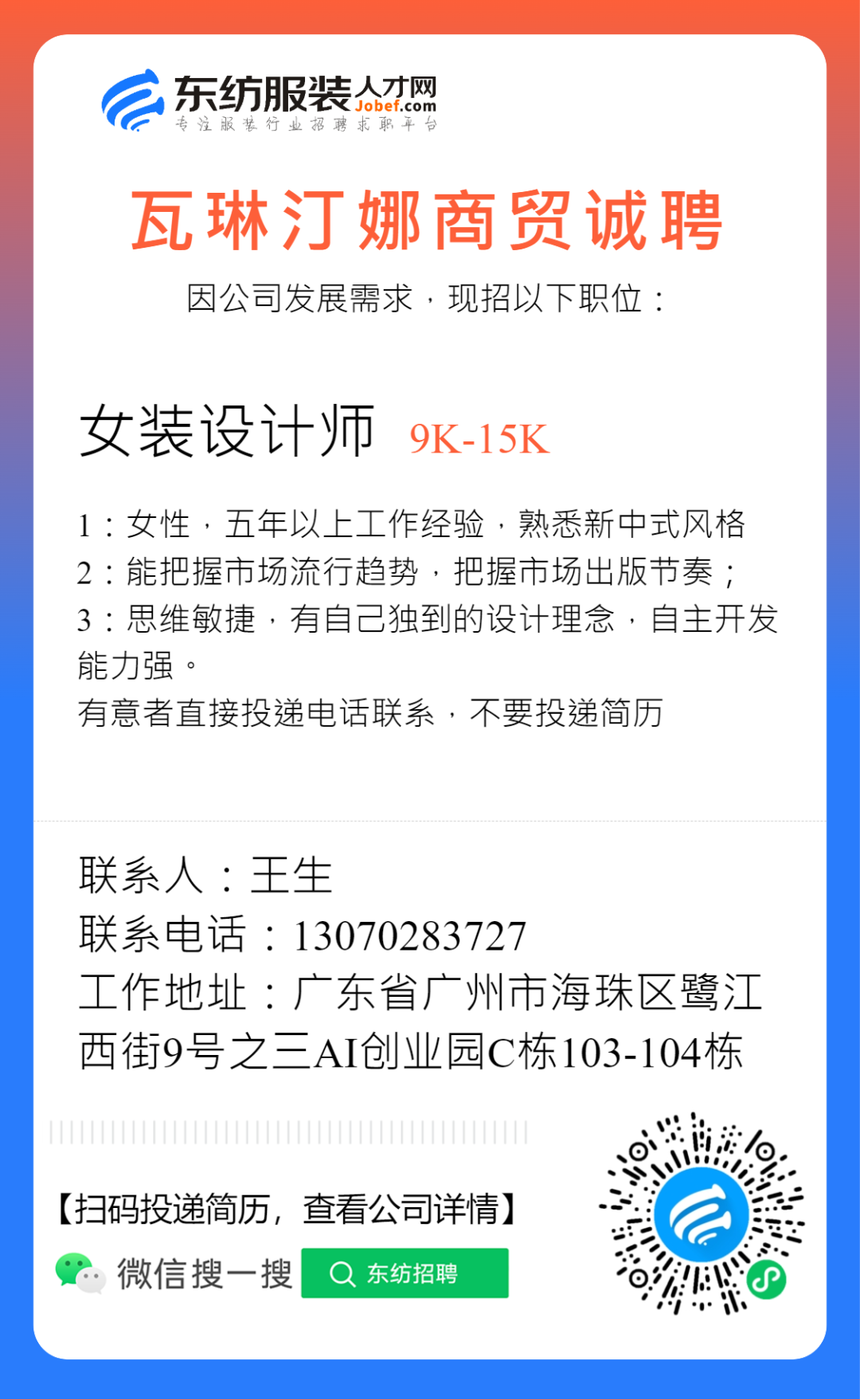 服装招聘·设计类丨2. 07号,女装设计师、男装设计师、童装设计师、设计助理.....
