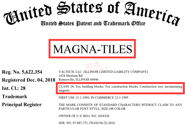 MAGNA-TILES商标:相关产品是磁性积木玩具,而且是半透明几何形状。