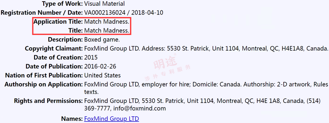 MATCH MADNESS版权也早就登记了,品牌方的宣传图片都不要使用。
