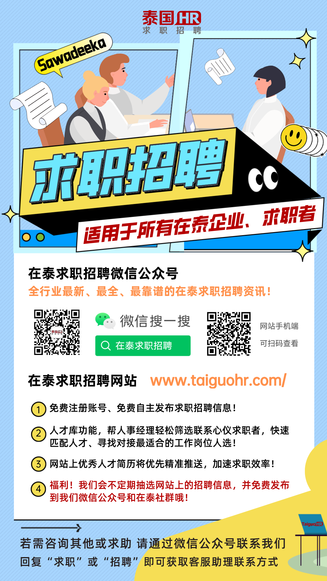 【薪资福利】试用期2个月40000泰铢,试用期过了工资最少提高5000,包吃住 社保 签证 法定节假日休息