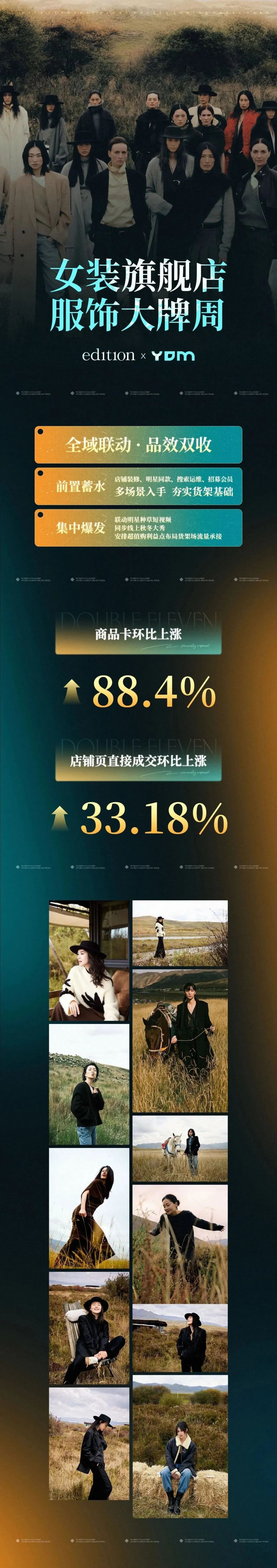 edition女装旗舰店和杭州摇多米网络科技有限公司合作或许能带来一些思考。活动期间,品牌结合新品生命周期,采用“前置蓄水+集中爆发”的打法,高效整合平台资源,在全域联动中实现品效双收。活动期间,商品卡成交环比上涨88.4%,店铺页成交GMV环比上涨33.18%。
