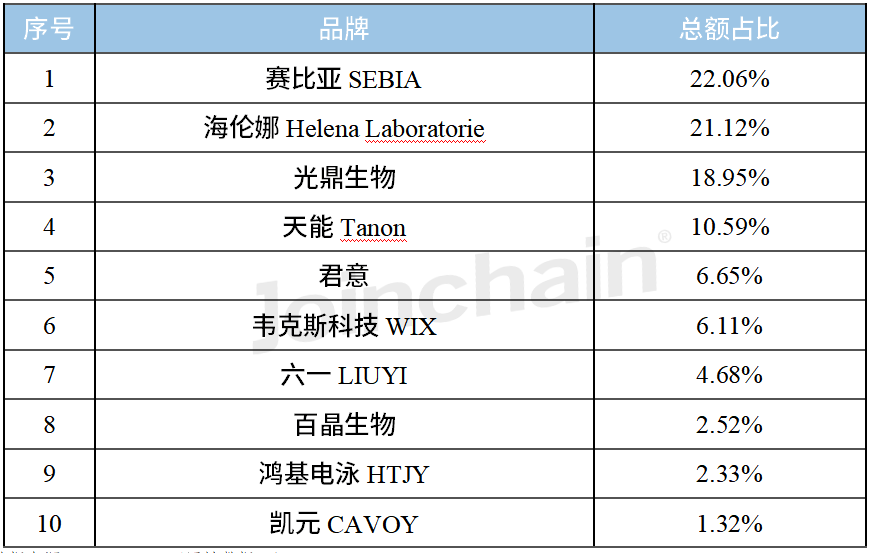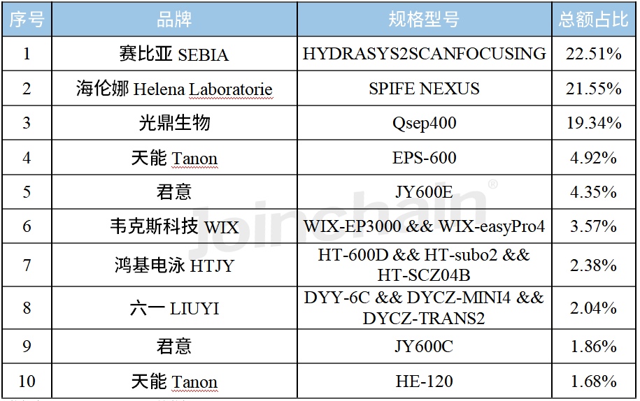 图表1 2023年12月电泳仪器品牌中标情况(Top10)