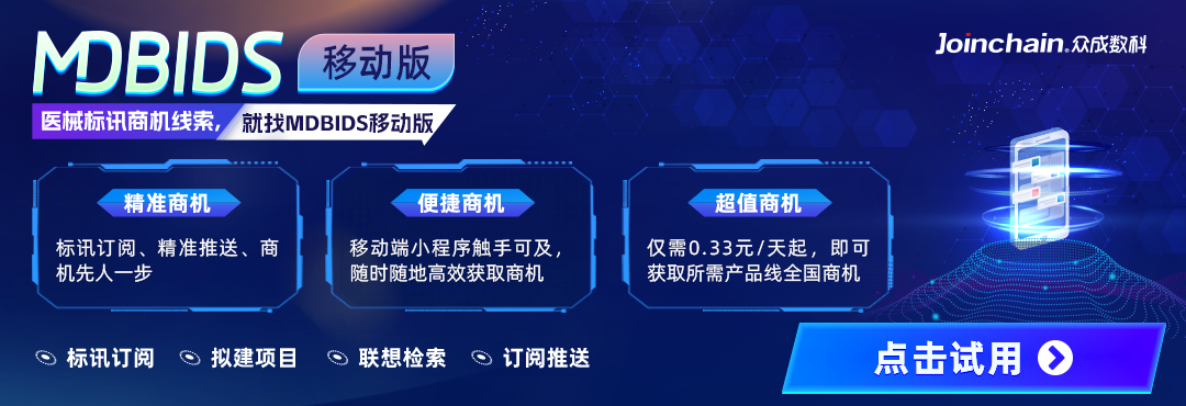 众成数科搭建医疗器械领域招投标数据监测平台并开展全维度数据提取,包含产品规格型号、技术参数及附件提取,涵盖200+产品线,实现T+1日更检测,提供细分市场分析、区域检测、竞争格局、经销商分析等定期报告及定制数据,欢迎联系客服咨询。