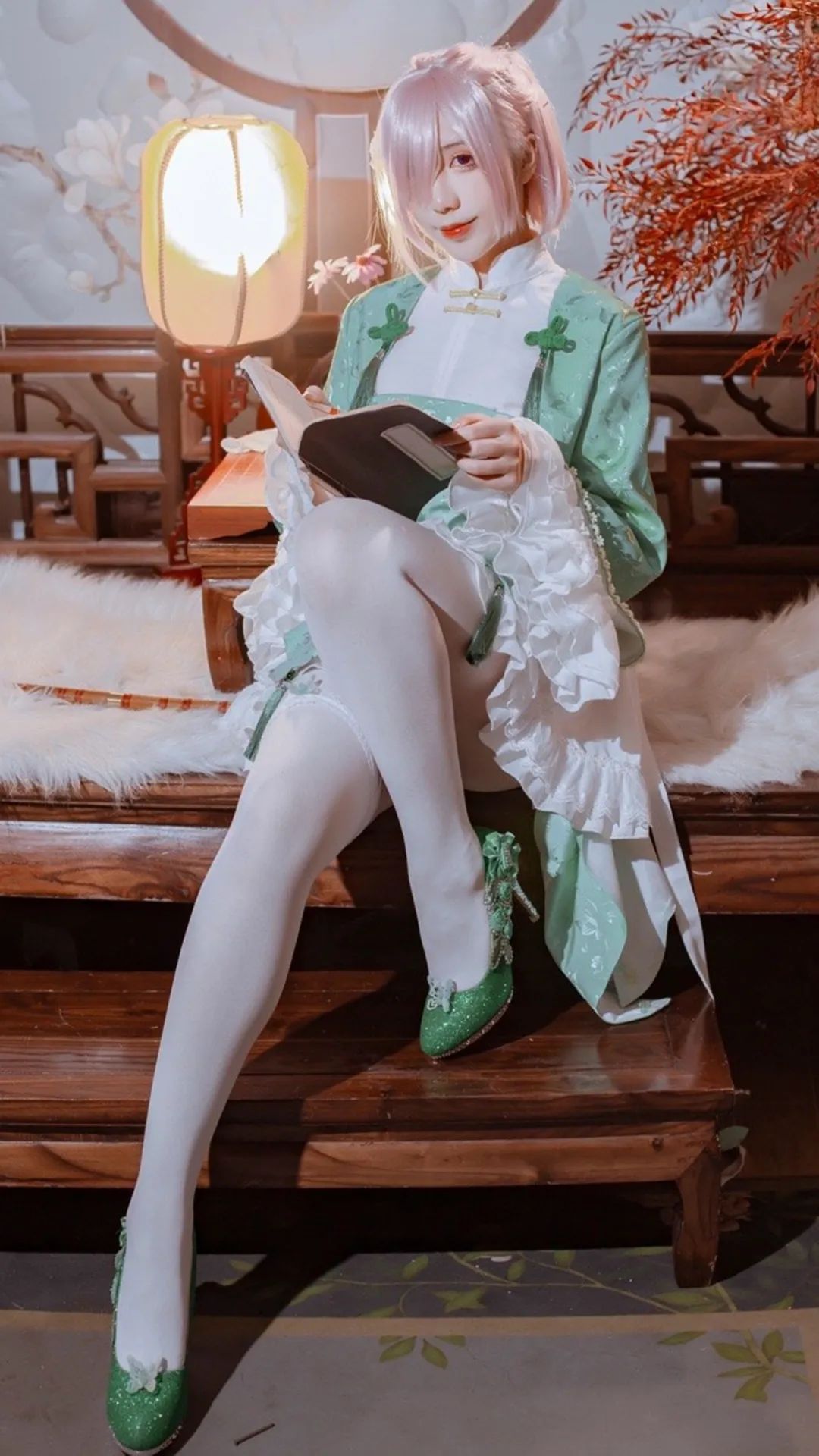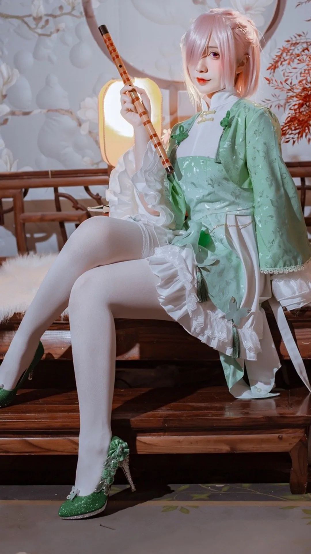 古典服装的玛修学妹彷佛多了点成熟的韵味,她的腿形曲线美妙绝伦,给人一种强烈的视觉冲击