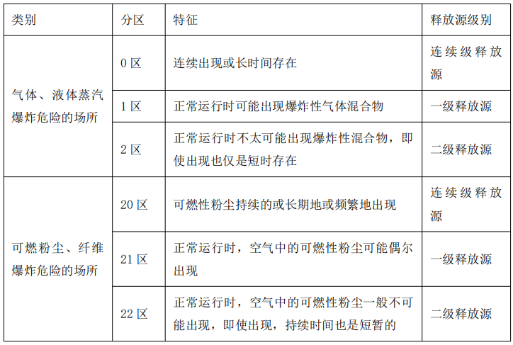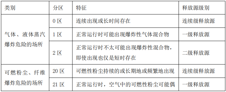 3)二级释放源是指在正常运行时不会释放,仅是偶尔和短期释放源,存在二级释放源的区域可划为 2 区。