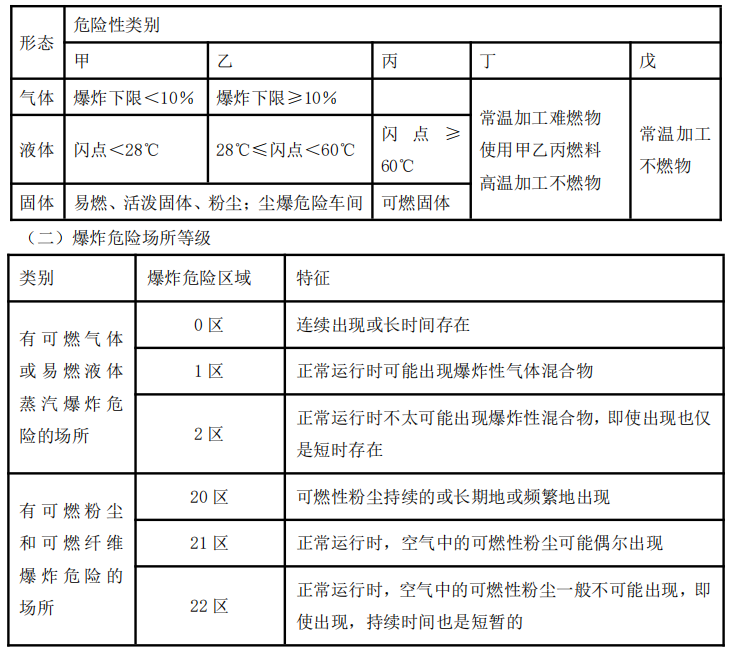 (一)生产场所爆炸性环境分类与分级