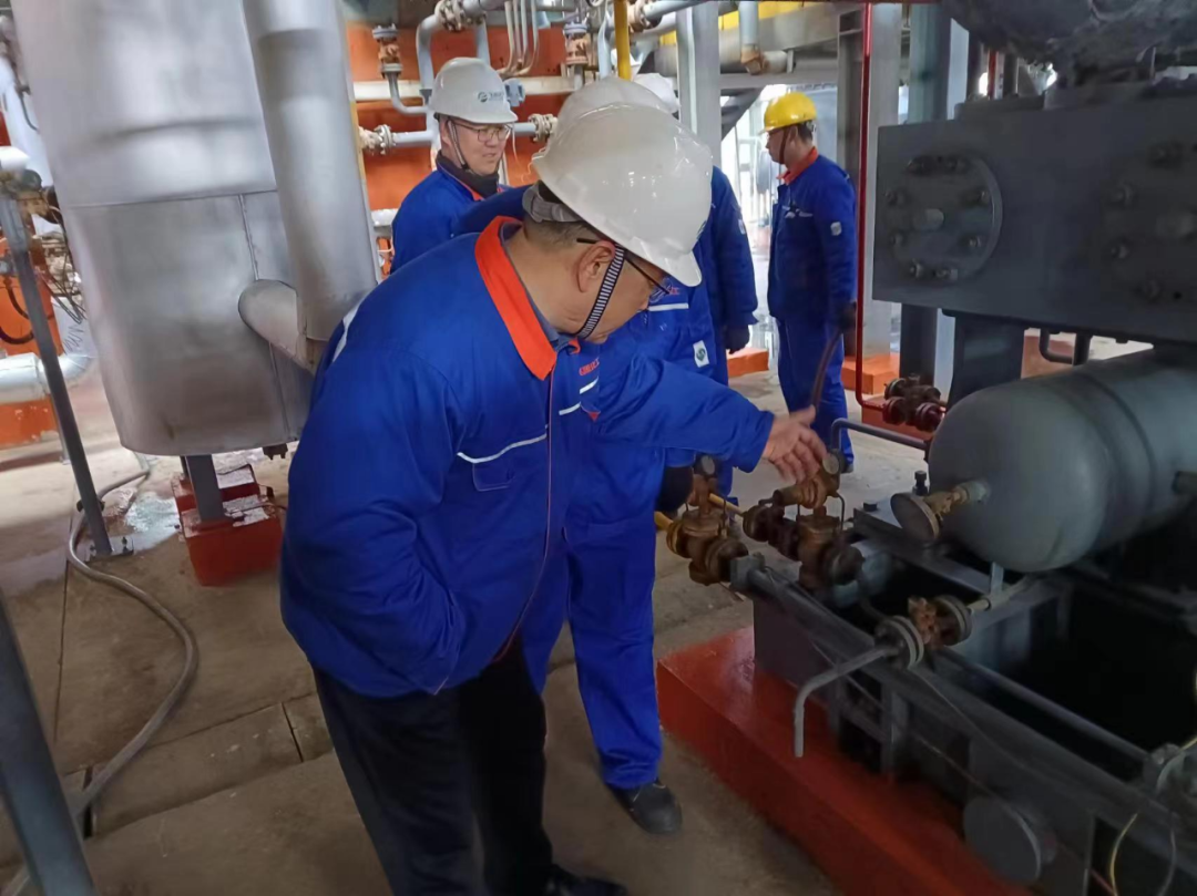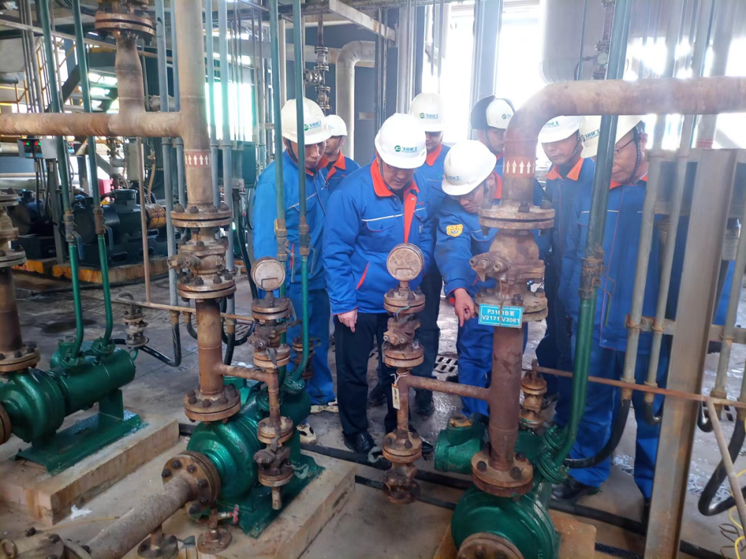 此次专项检查由总经理张乐勇带队,副总经理、设备部、电仪车间、各事业部负责人及安全部人员参加,对节假日值班值守情况、应急物资准备、劳动纪律、各生产装置、罐区及重大危险源视频监控、气体报警情况以及工艺、设备、电气仪表进行了全面检查。