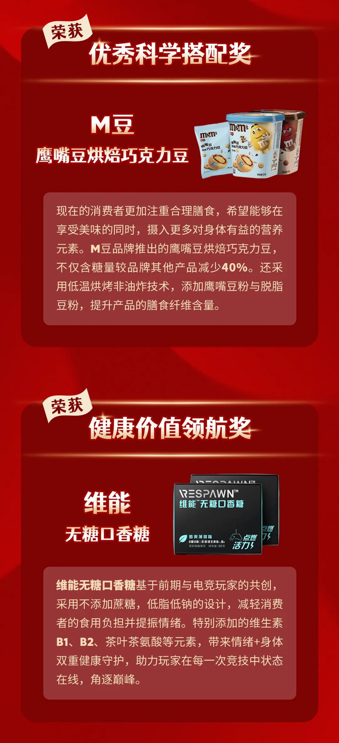 近日,玛氏旗下玛氏箭牌四款健康创新产品获得包括2023年“营养师心选健康好物”、 营养师心选健康好年货榜单和2023年尼尔森IQ BASES新品风尚标在内的多项行业大奖。
