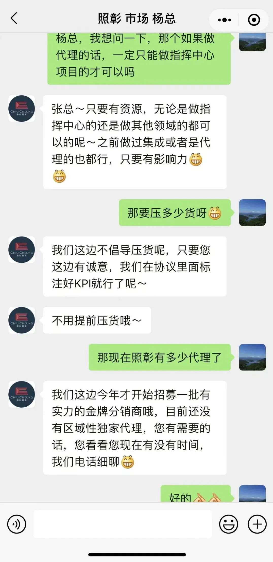 也因为这个项目,老张萌生了要不要做照彰产品代理的想法,但这年头生意不好做,老张很害怕大量压货,怕被“掐脖子”。