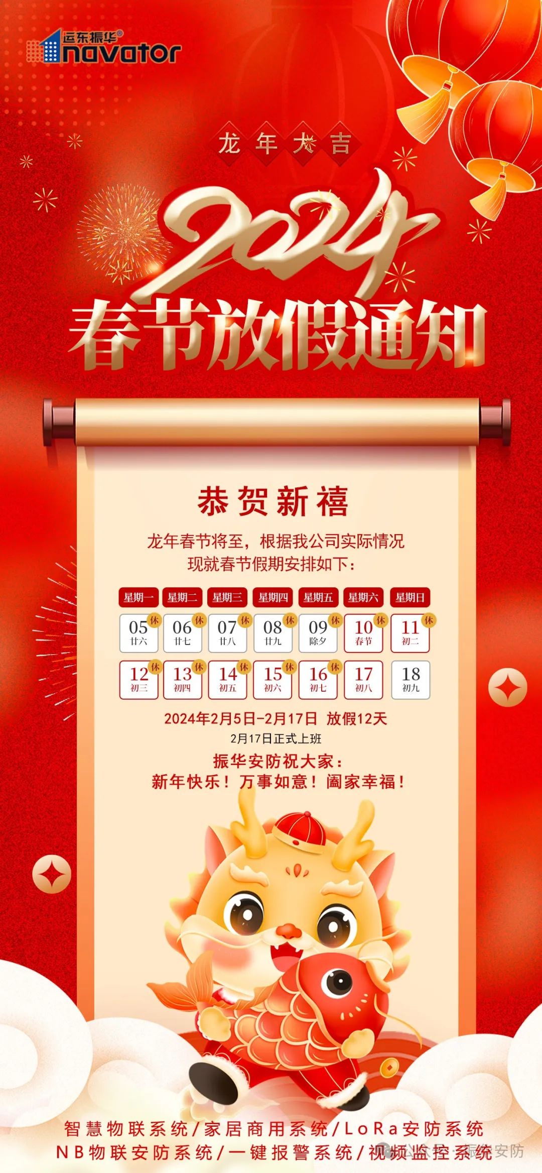 振华安防2024年春节放假通知