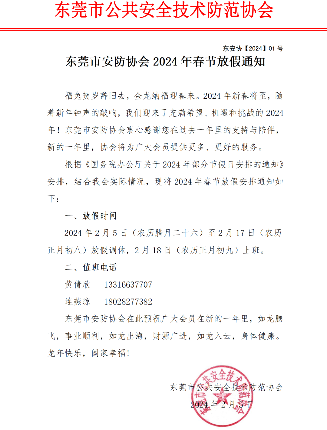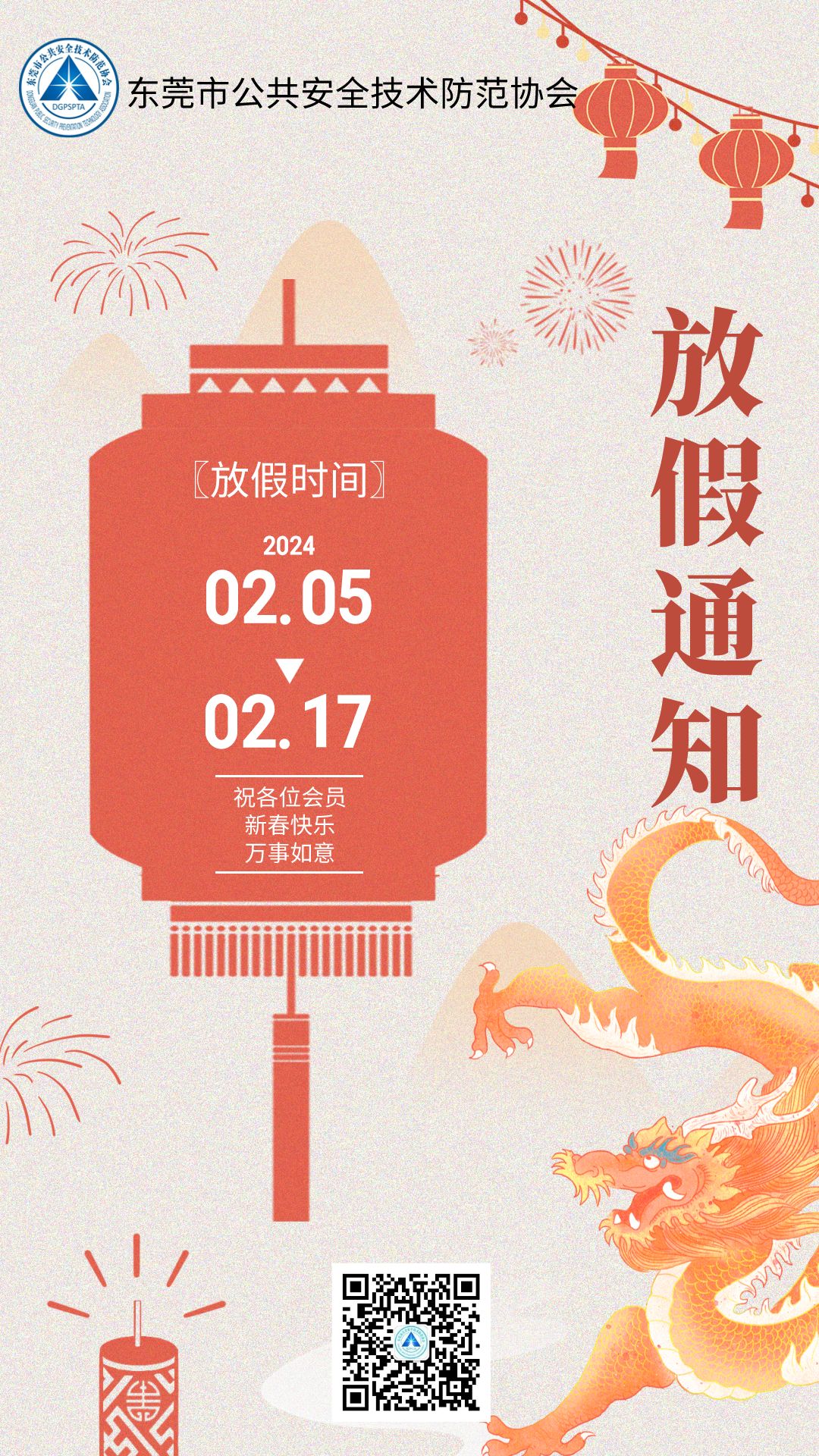 【放假通知】东莞市安防协会2024年春节放假通知