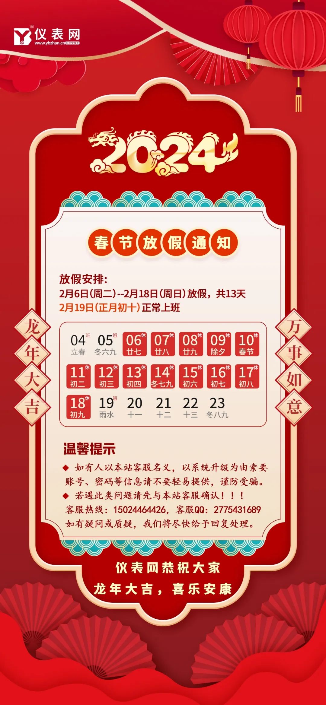 仪表网2024年春节放假通知