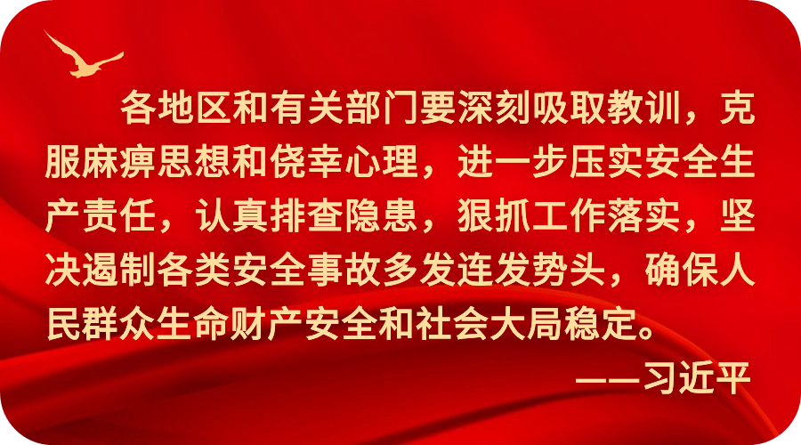 会议强调,各级各单位要树牢“人民至上、生命至上”理念,始终牢记安全生产是天大的事、安全生产是大家的事、安全生产是自己的事,天大的事大家来管,大家的事从我做起,以不说大话、不看笑话的清醒定力,尽职尽责,守牢底线。要做好“防”和“救”两篇文章,树立“预防就是最好的应急”思想,做到防为先、救兜底。要回答和践行“我是谁、为了谁、依靠谁”三个问题,树立“人人都是参与者、人人都是受益者、人人都是责任者”的意识,明责知责、履职尽责、齐抓共管,以家庭温馨寄语等方式,构筑起安全生产共建共治共享的人民防线,以高水平安全服务保障全市高质量发展。