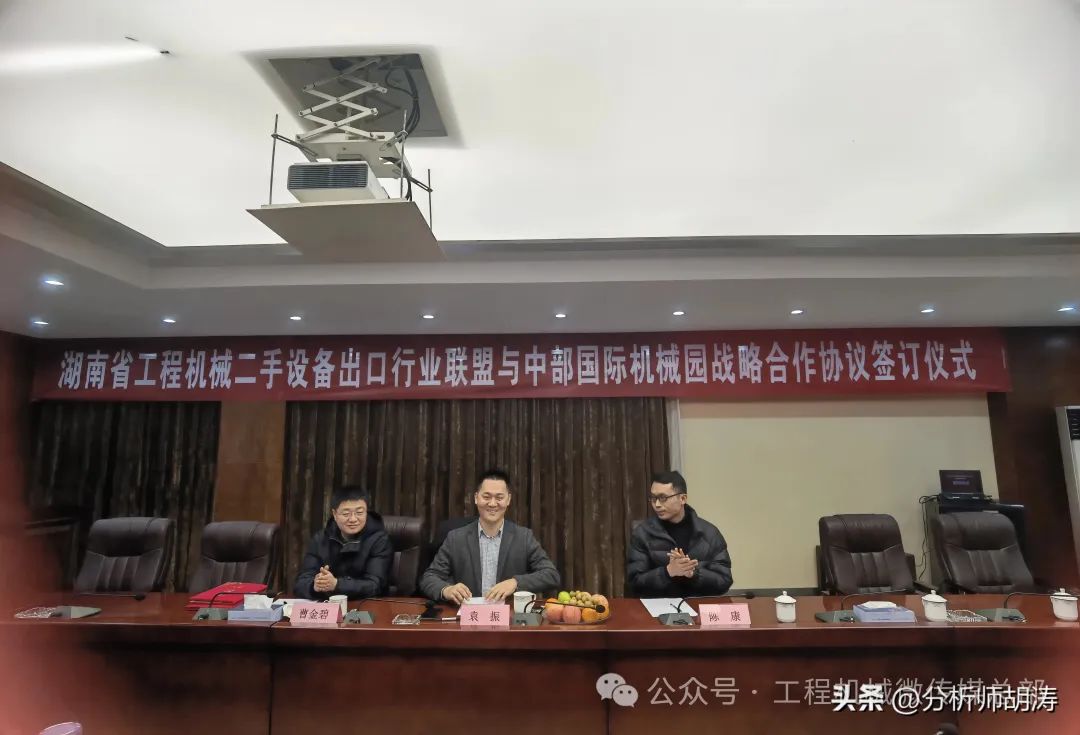 今天上午,湖南省工程机械二手设备出囗行业联盟与中部国际机械园的签约仪式在该园营销中心三楼顺利举行,岳塘经开区党工委副书记、管委会主任崔旺出席并见证签约。