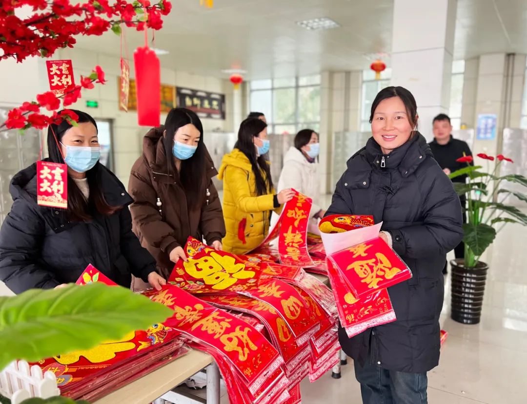 欢歌笑语辞旧岁,龙腾虎跃闹新春!为丰富职工生活,营造喜庆祥和、文明和谐的新春氛围,2月2日,机械装备集团矿机公司团总支开展迎新春系列活动。在该公司职工餐厅内,青年志愿者们热情地将春联送到职工手中,一副副红火的春联,传递着对职工们的美好祝福;职工将写着“安全生产”“平安顺遂”的心愿卡挂在红梅枝头。