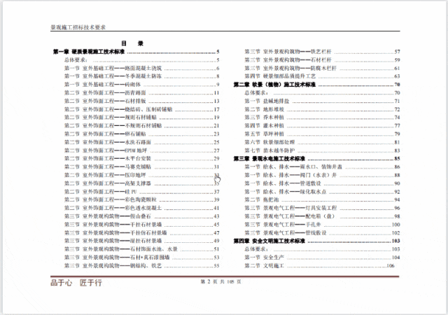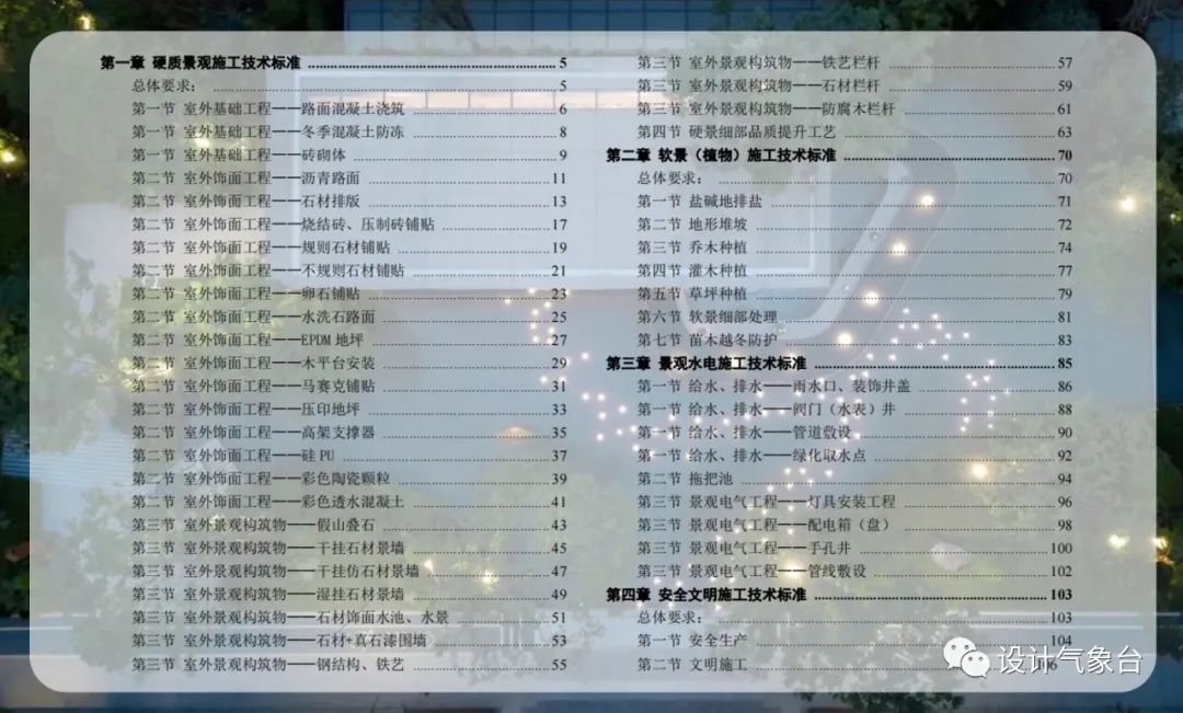 这本手册详细介绍了硬景、软景和水电施工,例如硬景部分包括28项详细分类,如路面混凝工浇筑、砖砌体、石材排版、木平台安装、压印地坪、假山叠石、干挂石材景墙等。