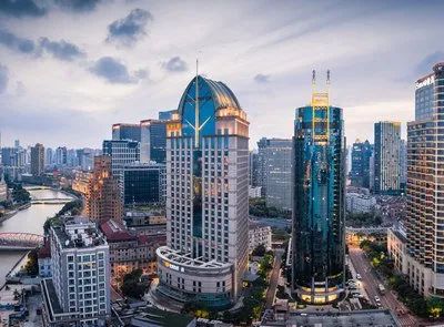 该大楼采用了钻孔灌注桩工艺,它的占地面积约为5497平方米,建筑面积约52000万平方米,高100米,共有26层,地下3层。其1-2楼为商业裙房,3-27楼为办公用房,28楼-29楼为会员制餐厅。每层写字楼建筑面积约为1534平方米,使用率极高的无柱式建筑设计,为用户提供极灵活而且弹性的办公空间。
