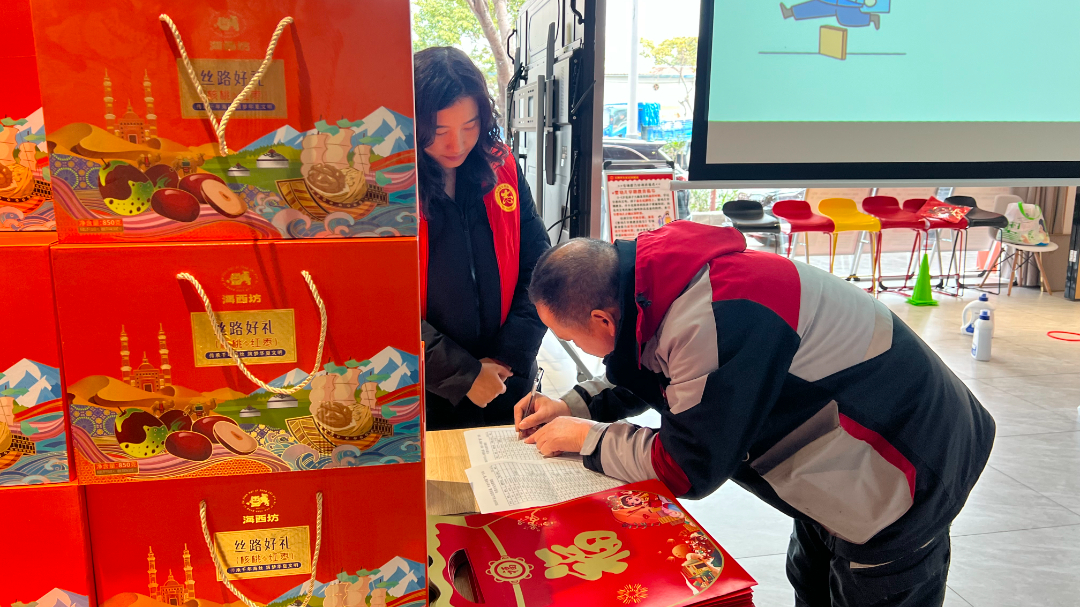 活动共吸引了近百名快递外卖小哥到场参加,现场为快递外卖小哥们精心准备了新春祝福春联和暖心大礼包等,丰富多样的互动环节营造出浓浓的年味氛围。