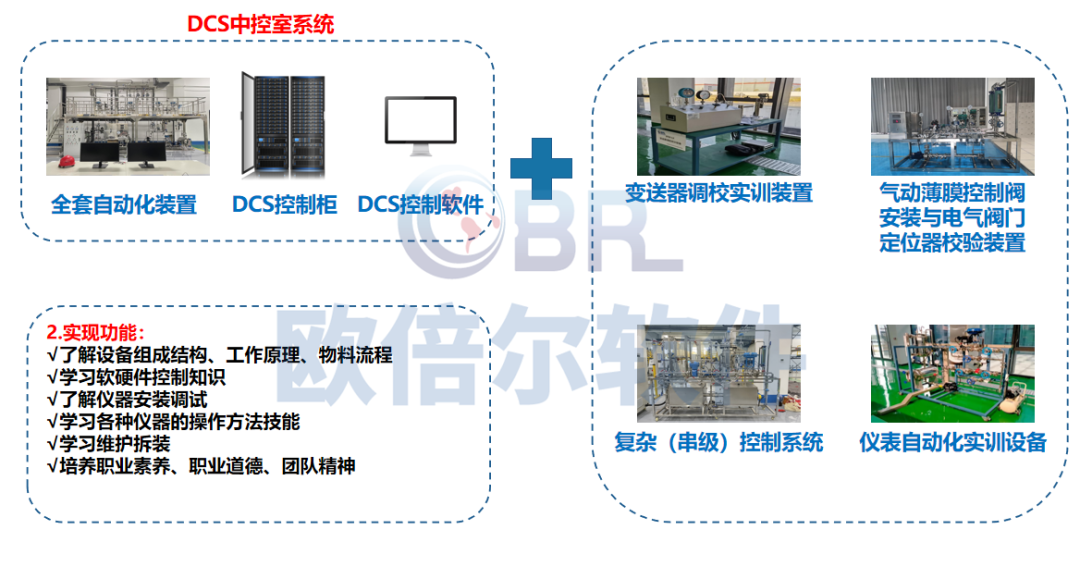 北京欧倍尔智慧化工园区实训基地中,化工仪表实训中心区域将工厂常用的控制系统、阀门仪表、机泵、调节阀、变送器等设备集合在一起进行教学,通过对企业、学校仪表实训场建设及以往行业相关比赛赛点设置的经验总结及分析,特做如下仪表实训中心建设方案,里面所涉及的实训装备的设计都贴近工厂实际使用要求,几乎涵盖了所有自动化过程控制仪表在检测、运行、维护时所必备的知识点和技能要求。