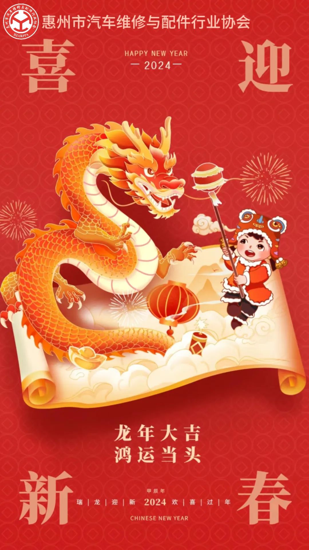 惠州市汽车维修与配件行业协会恭祝大家新春快乐、龙年大吉!