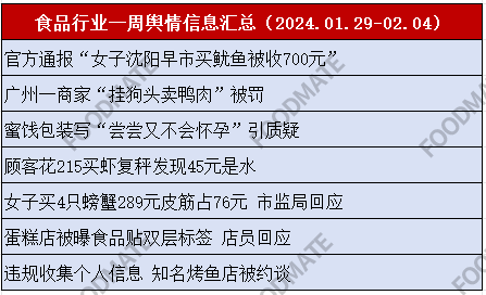 食品行业一周舆情信息汇总(2024.01.29-02.04)