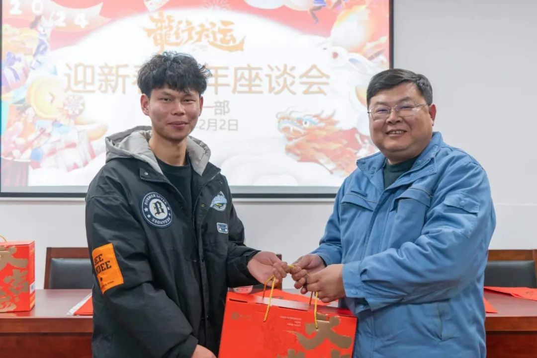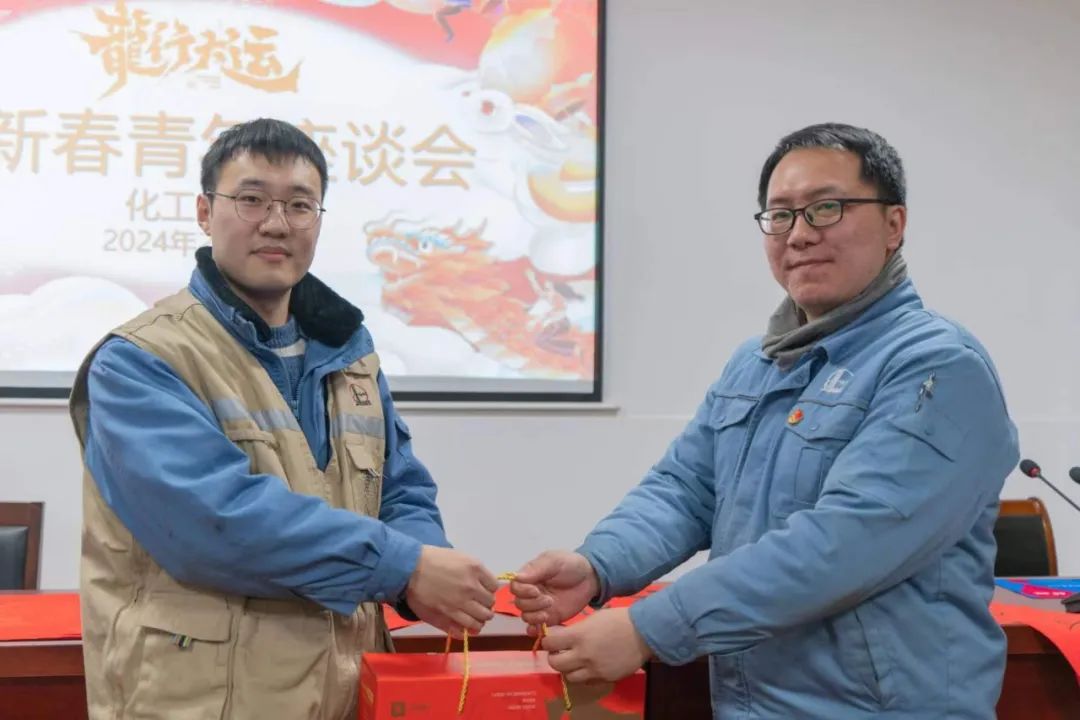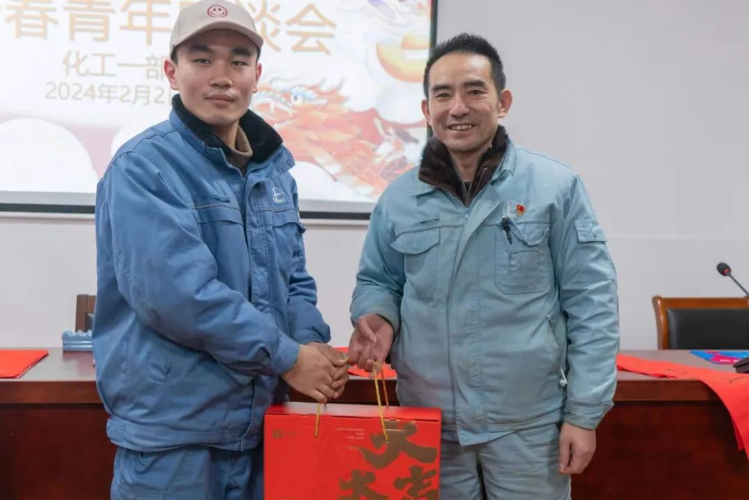 龙腾虎跃迎新春,万象更新展宏图。近日,化工一部举办了一场温馨的迎新春茶话会,为新春佳节增添了浓厚的喜庆氛围。运行部领导、各工区书记与青年员工欢聚一堂,共庆佳节,共谋未来。活动中,领导为青年员工发放春节慰问礼盒,并赠送福字,送去满满的新春祝福。