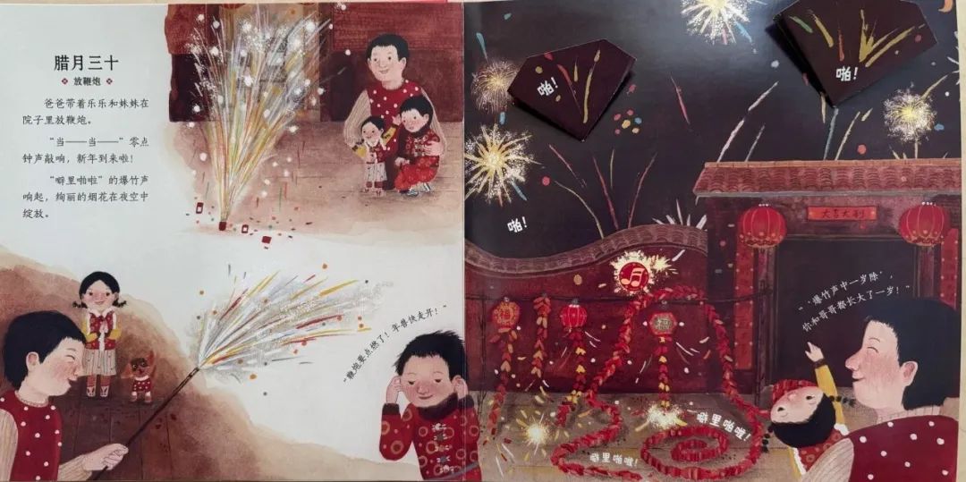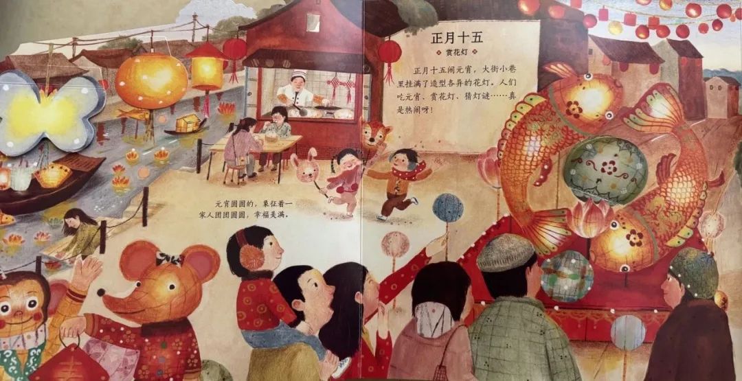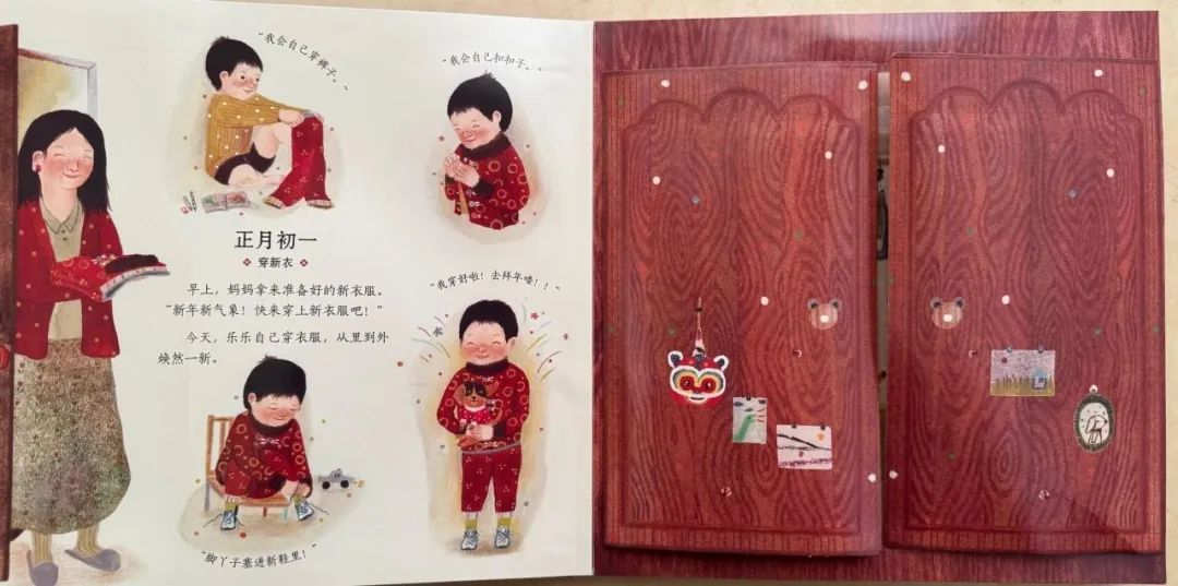 春节是我们中华民族最隆重的传统佳节,翻开《过年啦》,小朋友们就会走进一个节日风情盎然的游乐场。书中藏着奇妙的翻翻、拉拉、信袋、立体等多种新巧的互动形式,小朋友不但能够了解各种春节礼仪,还可以自己动手,贴对联、穿新衣、开红包、看舞龙、贴全家福,一直到大红灯笼高高挂,亲身体验春节带给人们的无尽欢乐!