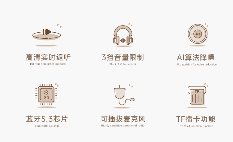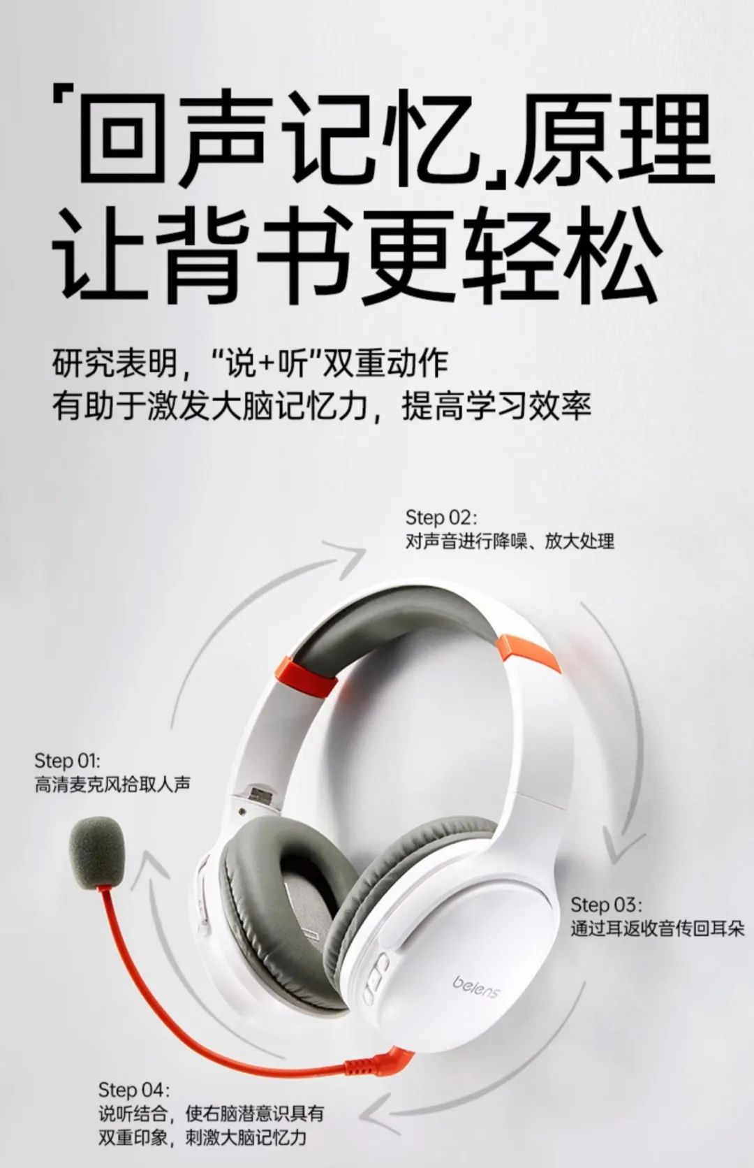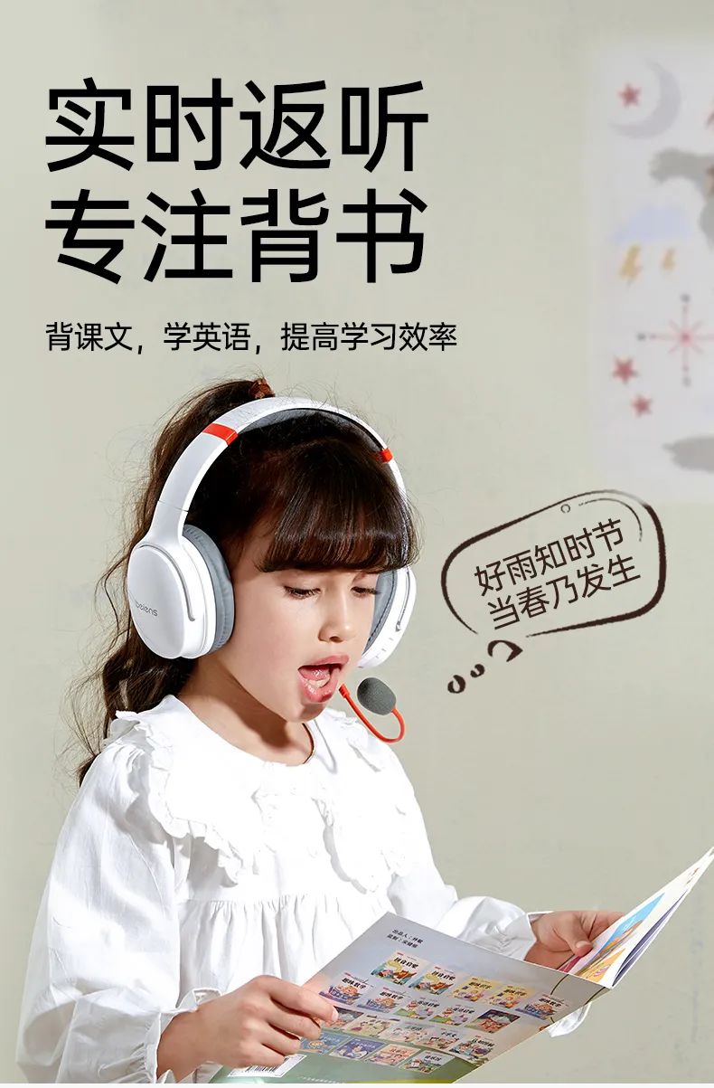 3大功能设计打造学生耳机2.0,适配更多学习场景,任何时候都能专注高效。背诵耳返记忆更快!!耳机还支持蓝牙模式,兼容手机、平板和电脑等多种设备,除诵读还能听歌、上网课。