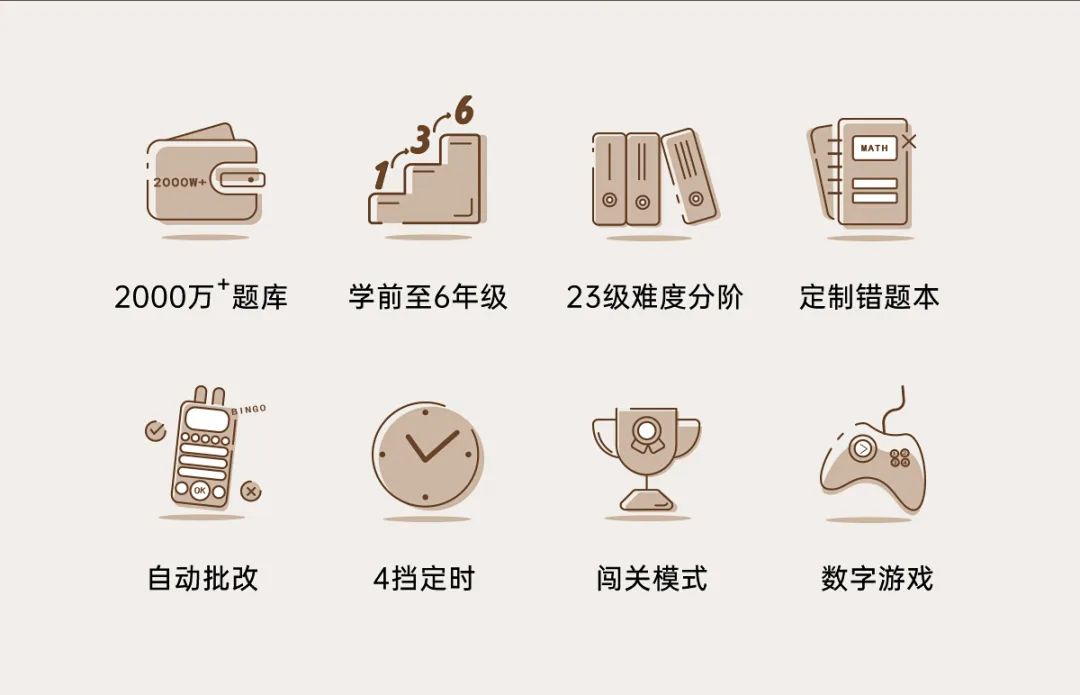 贝恩施这款计算可谓是目前市面上趣味性最强的口算计了!2000万口算题库,1-6年级全覆盖。 (2000万*题库数据源自贝恩施产品研发中心是根据口算机旗舰版内置出题程序测算所得结果)