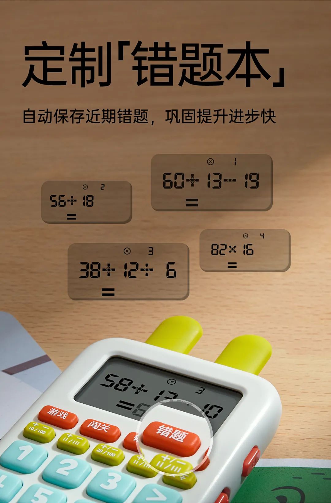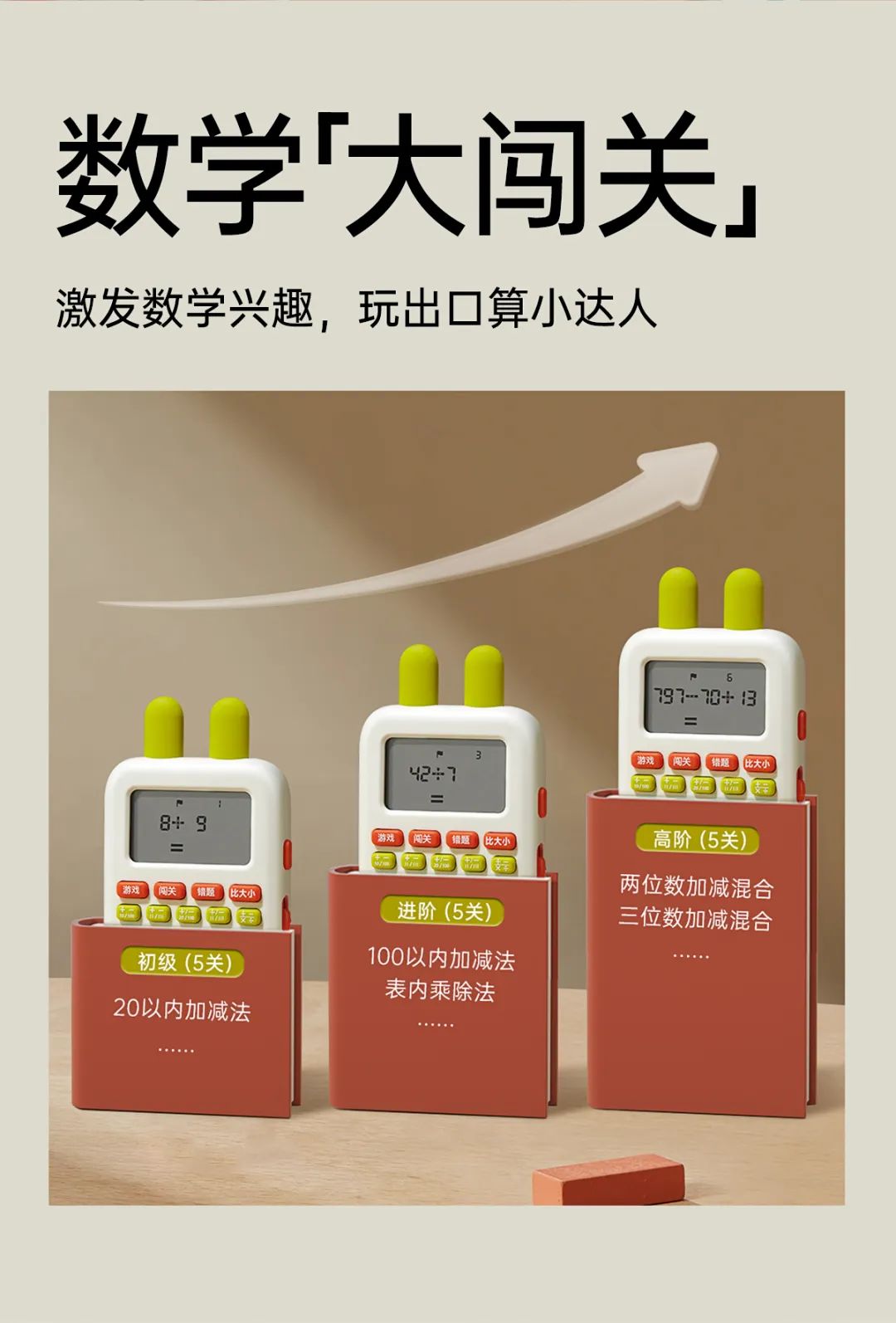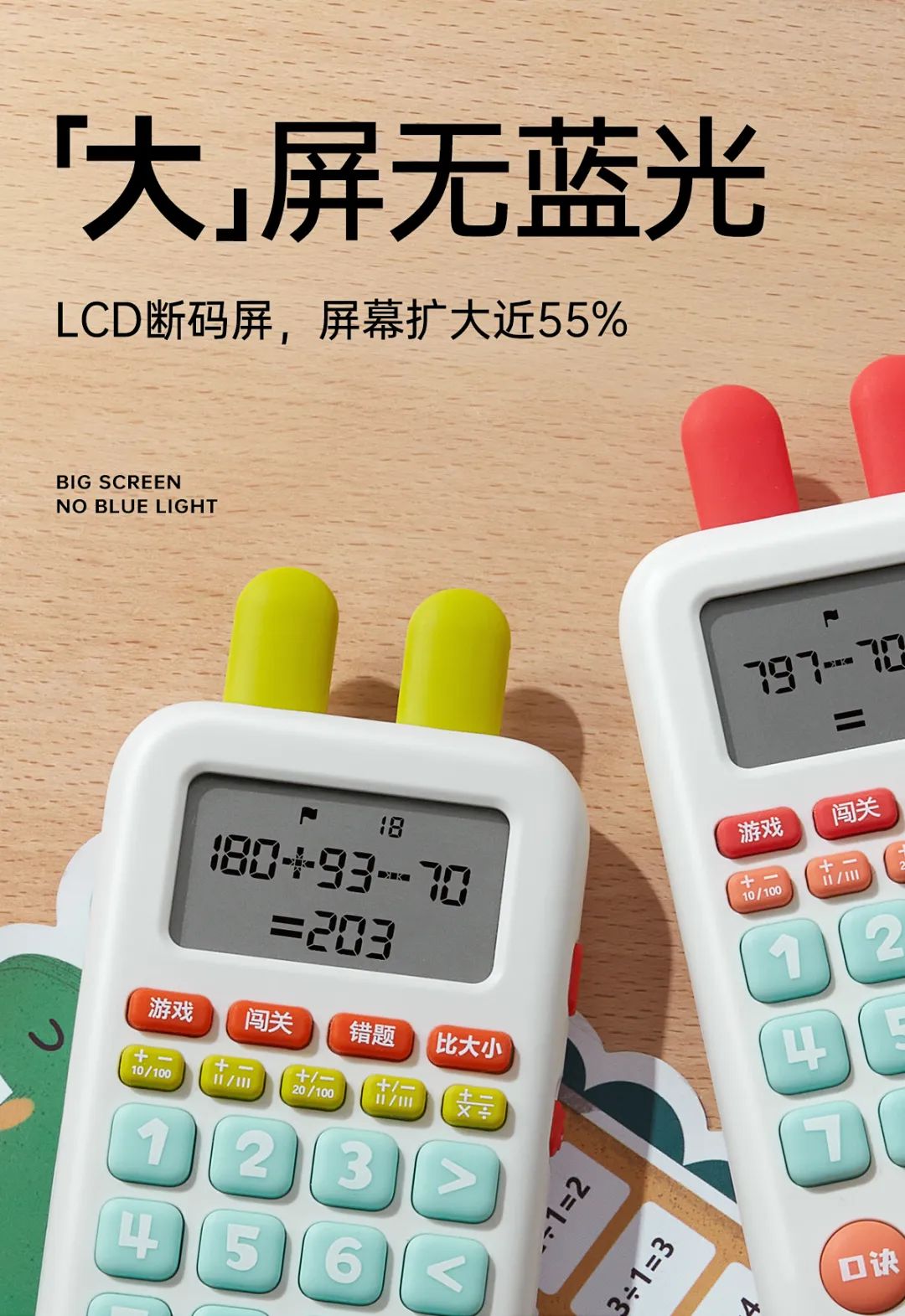 九九加减乘除法,潜移默化轻松记。口诀同屏显示口诀重听加深记忆从小培养好数感萌趣耳造型小巧装兜,随时练习走到哪都能学。