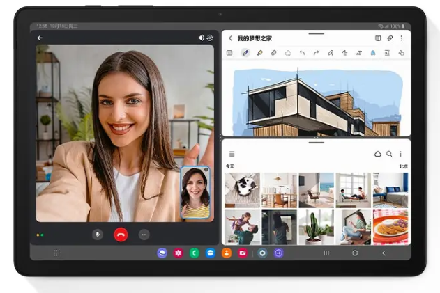 三星 Galaxy Tab A9+明亮的大屏视觉体验一气呵成的流畅动效,在宽大明亮的显示屏上尽情享受学习的乐趣。便捷分屏,一屏多用,可同时开启拍照、笔记、课件,实现高效学习。